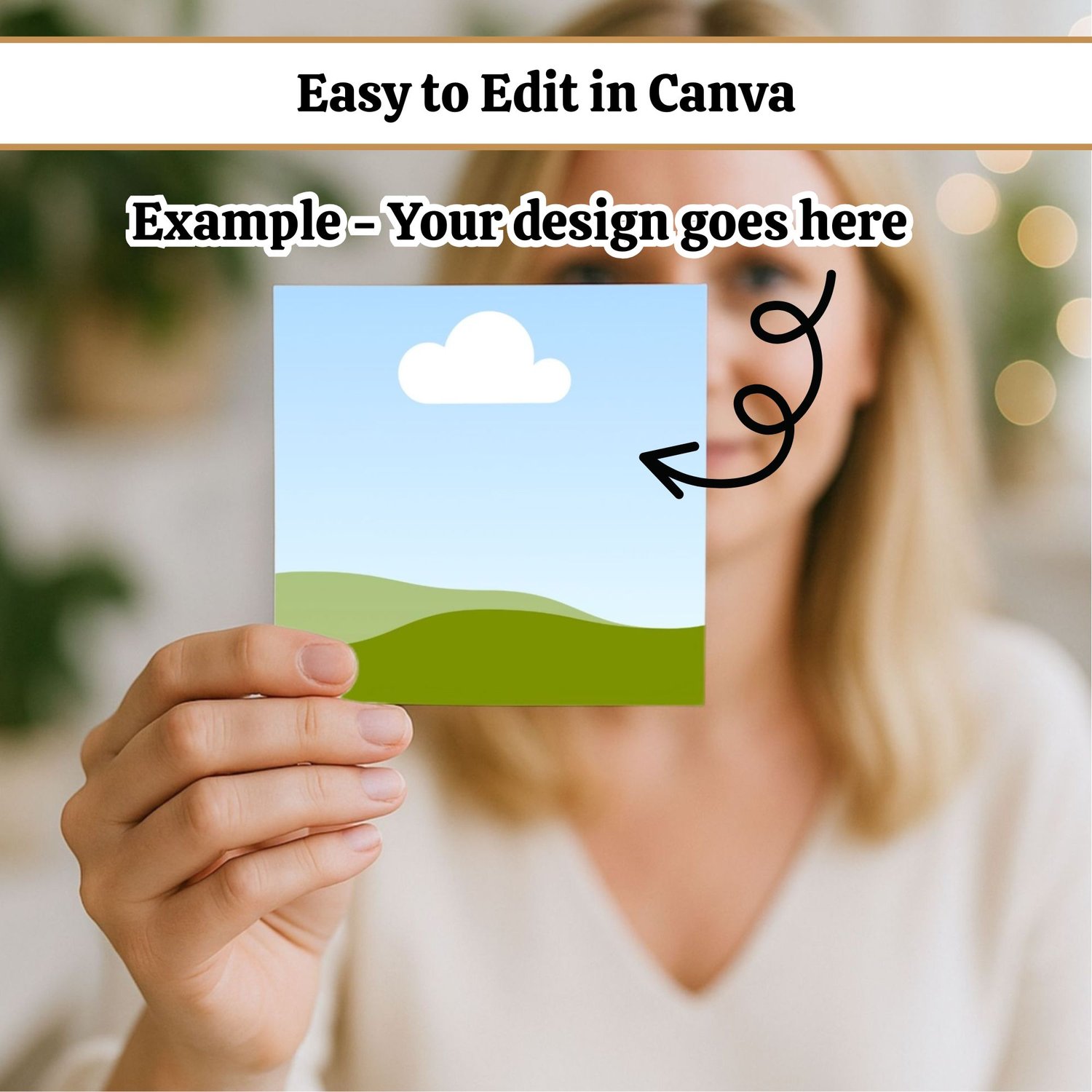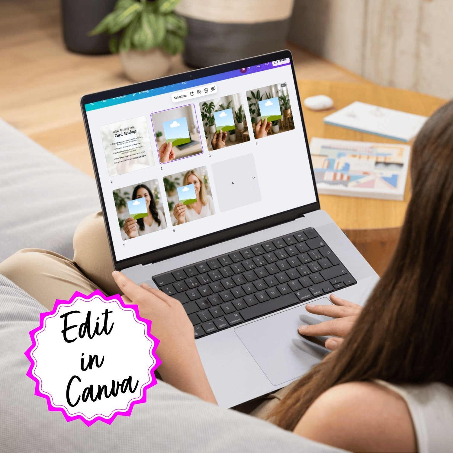 Showcase your work with ease using this Square Card Mockup, designed in Canva. Simply drag and drop your design into the editable frame for an instant, professional-looking product photo.