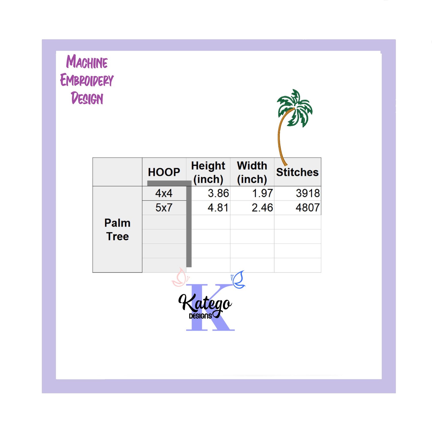 Palm Tree Embroidery File Design