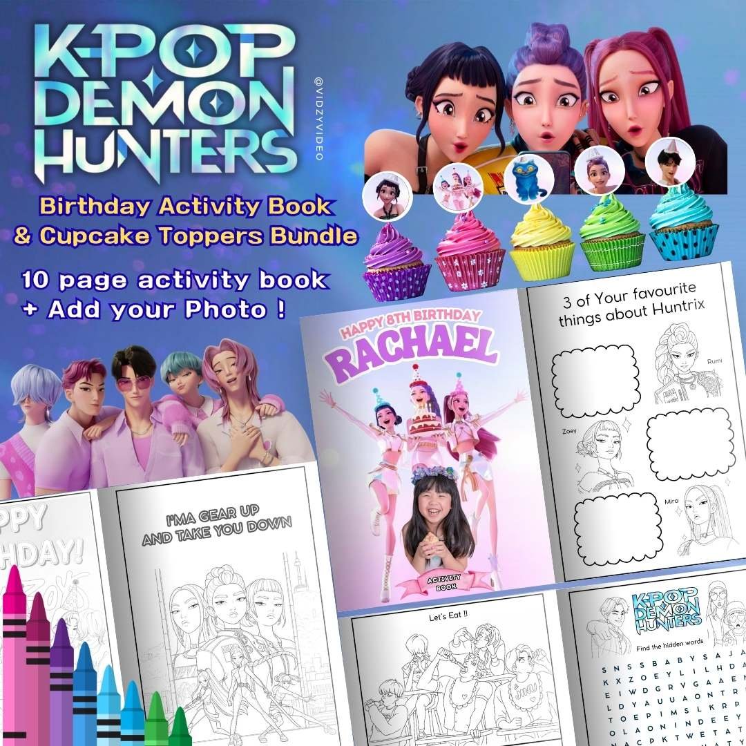 ✨ Bring music, color, and creativity to your child’s celebration with this K-Pop Demon Hunter Birthday Activity Book & Cupcake Topper set — the perfect addition to your K-Pop party!