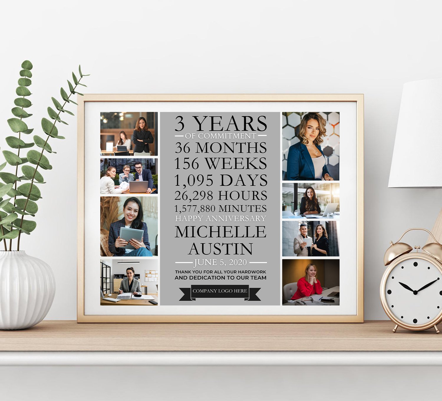 EDITABLE 3 year work anniversary gift for employees photo collage, years of service, gift for employee, thank you gift, digital file