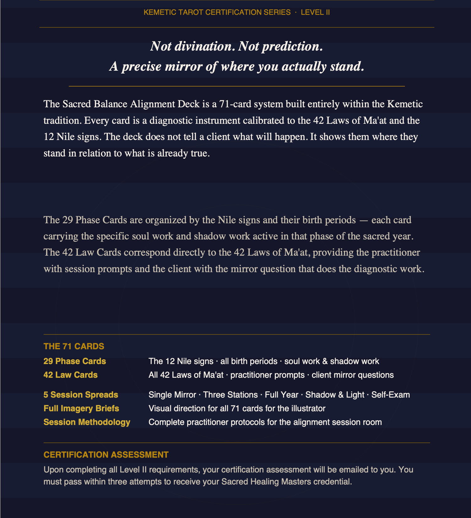 KEMETIC TAROT CERTIFICATION SERIES · LEVEL II: The Sacred Balance Alignment Deck