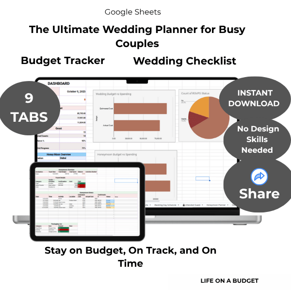 Plan your dream wedding stress-free with our all-in-one Google Sheets Wedding Planner!