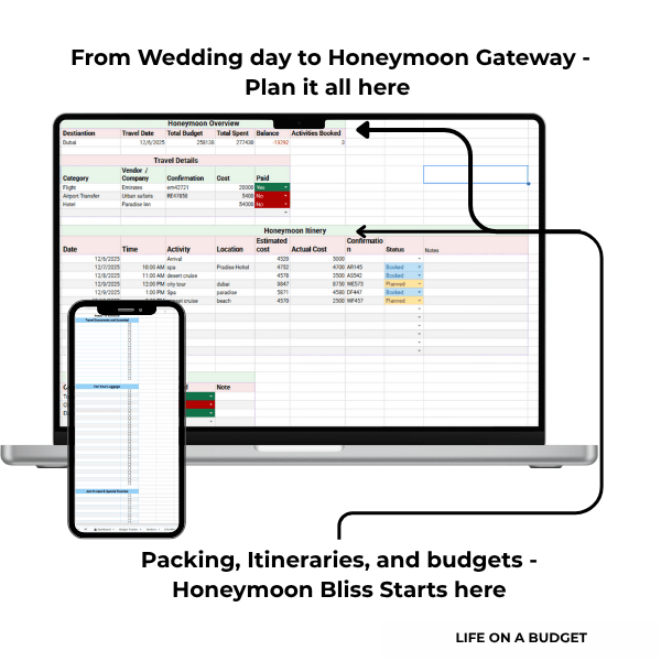 - ➕ Bonus: Includes a checklist, vendor contacts, Honeymoon Planner and Packing List !