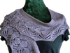 Ione is worked sideways along the long edge starting with the lace pattern, and ending with garter stitch short rows that shape it into a pleasing crescent.
