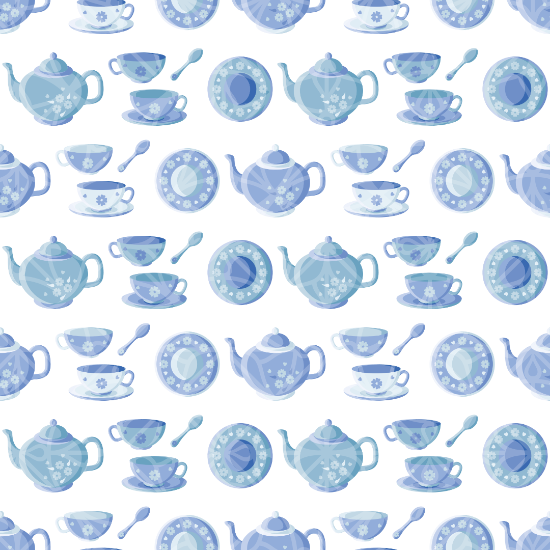 Blue Tea Set Seamless Vector Pattern