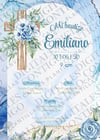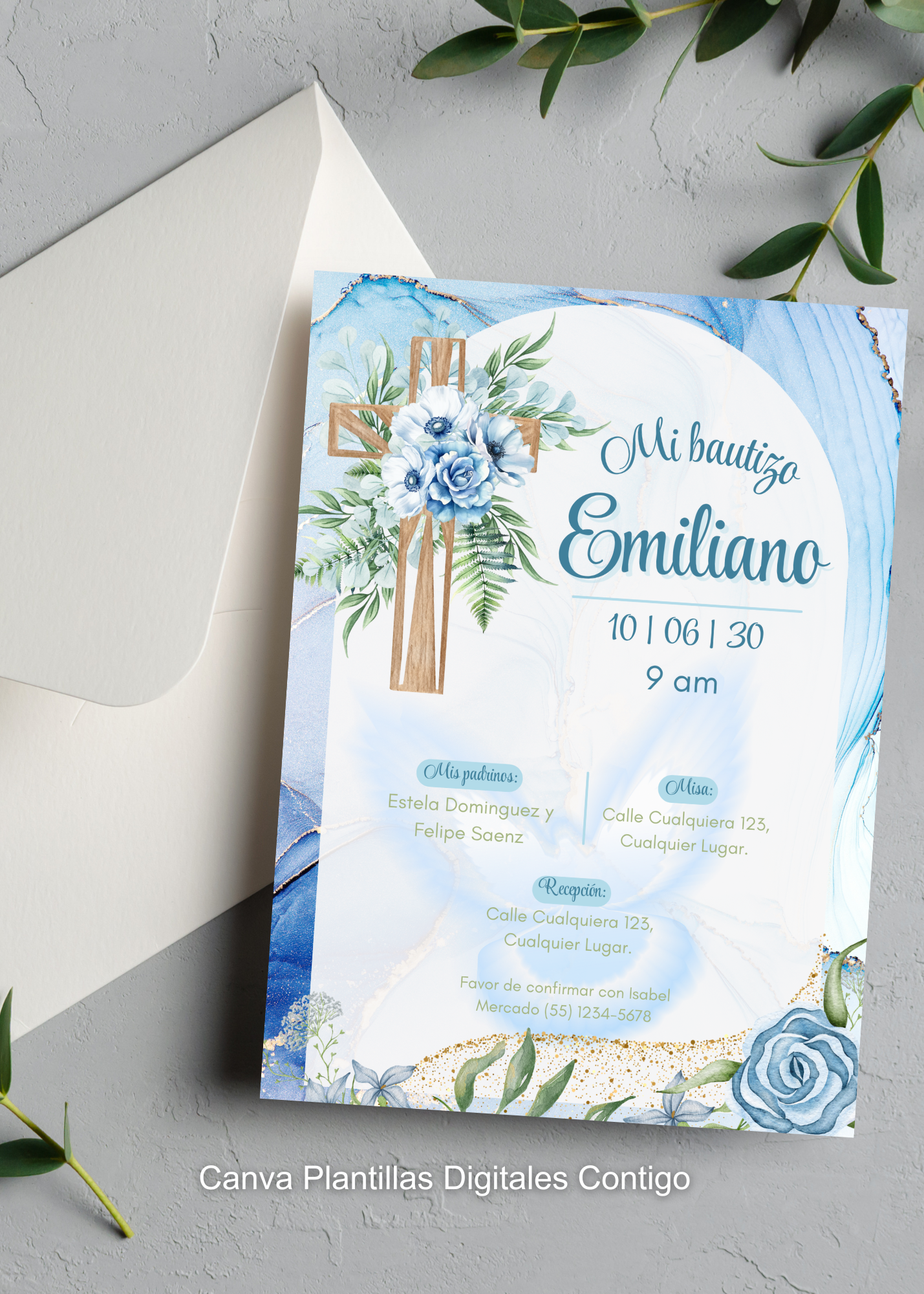 👼💙✨ Invitación de Bautizo Niño Acuarela Azul Elegante ✨💙👼