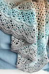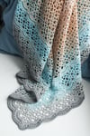Quickly crocheting shawl pattern “FROSTY LACE” includes: