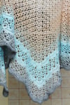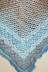 This triangle shawl crochet pattern begins at the center point of the top edge and expands outward to the sides. First, the entire lace section is created, followed by finishing the shawl with a scalloped edge and crocheting another row along the top edge. If you achieve the correct gauge, one cake of the recommended yarn is sufficient.