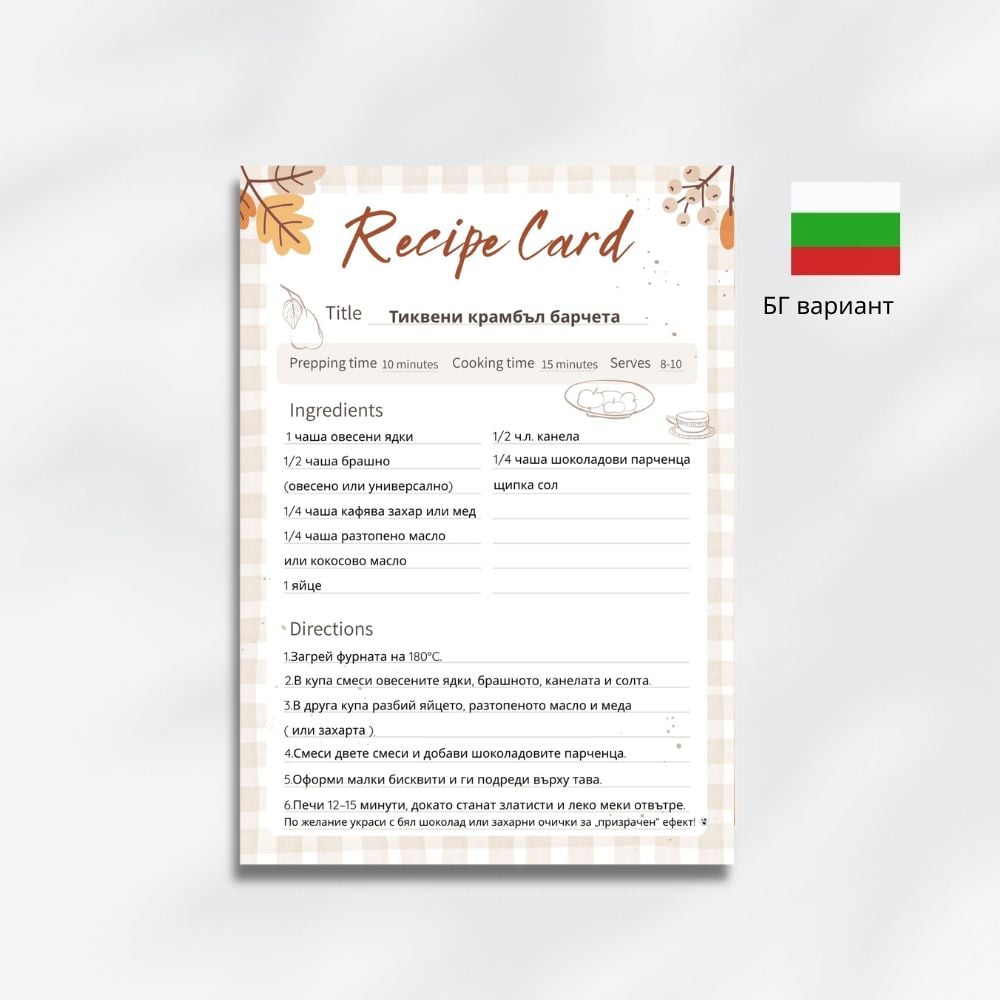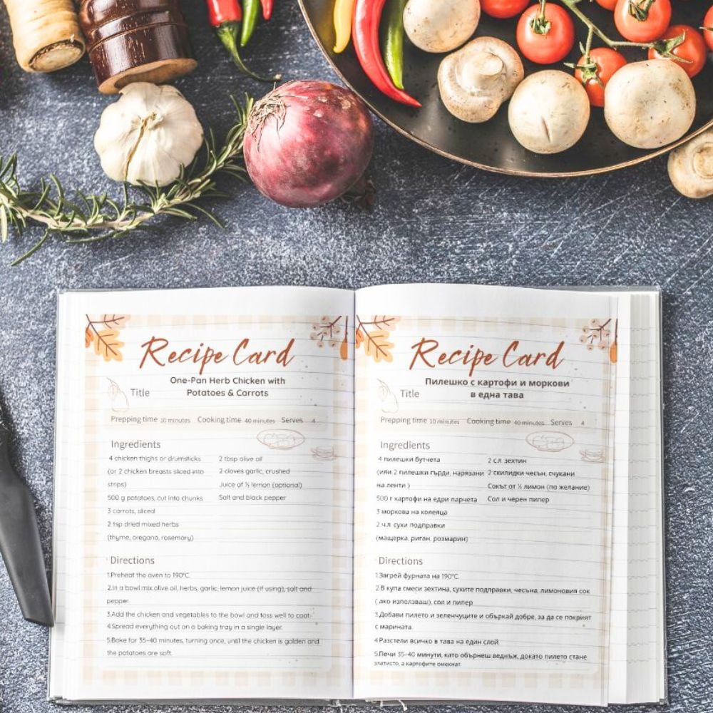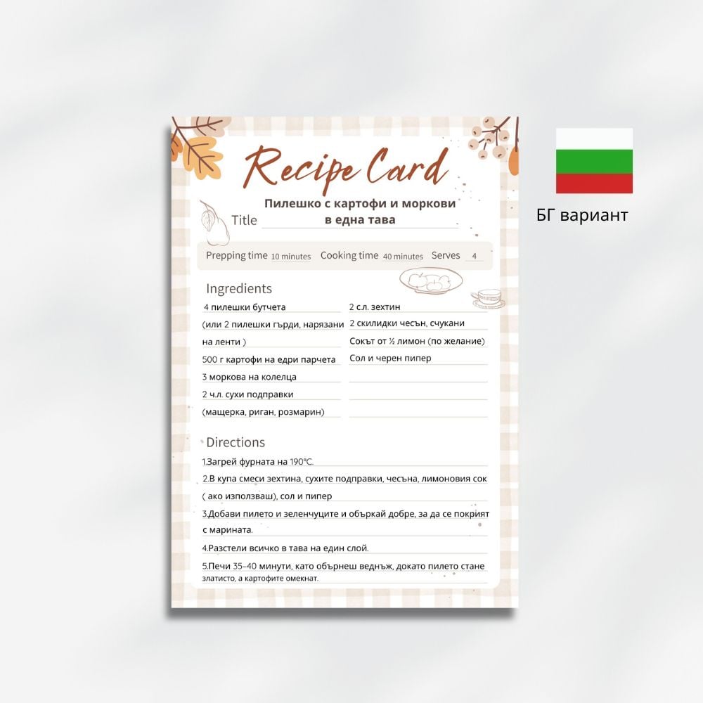 You’ll receive beautifully designed recipe cards in both English and Bulgarian, ready to print or save on your tablet/phone.