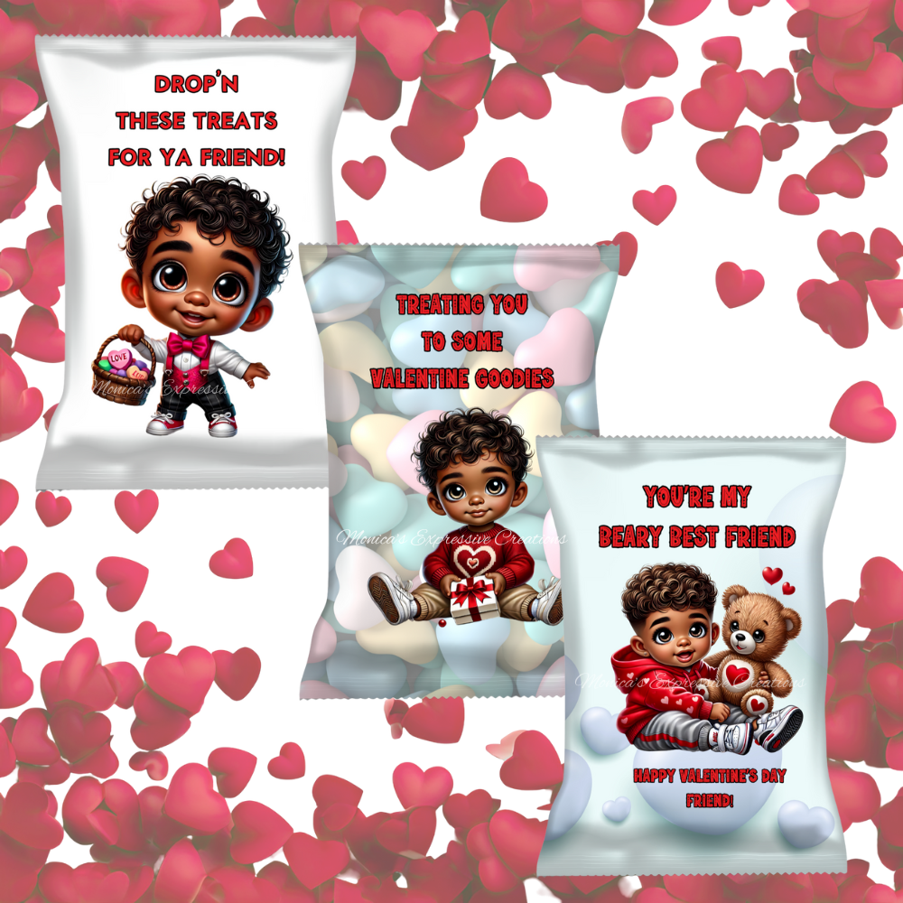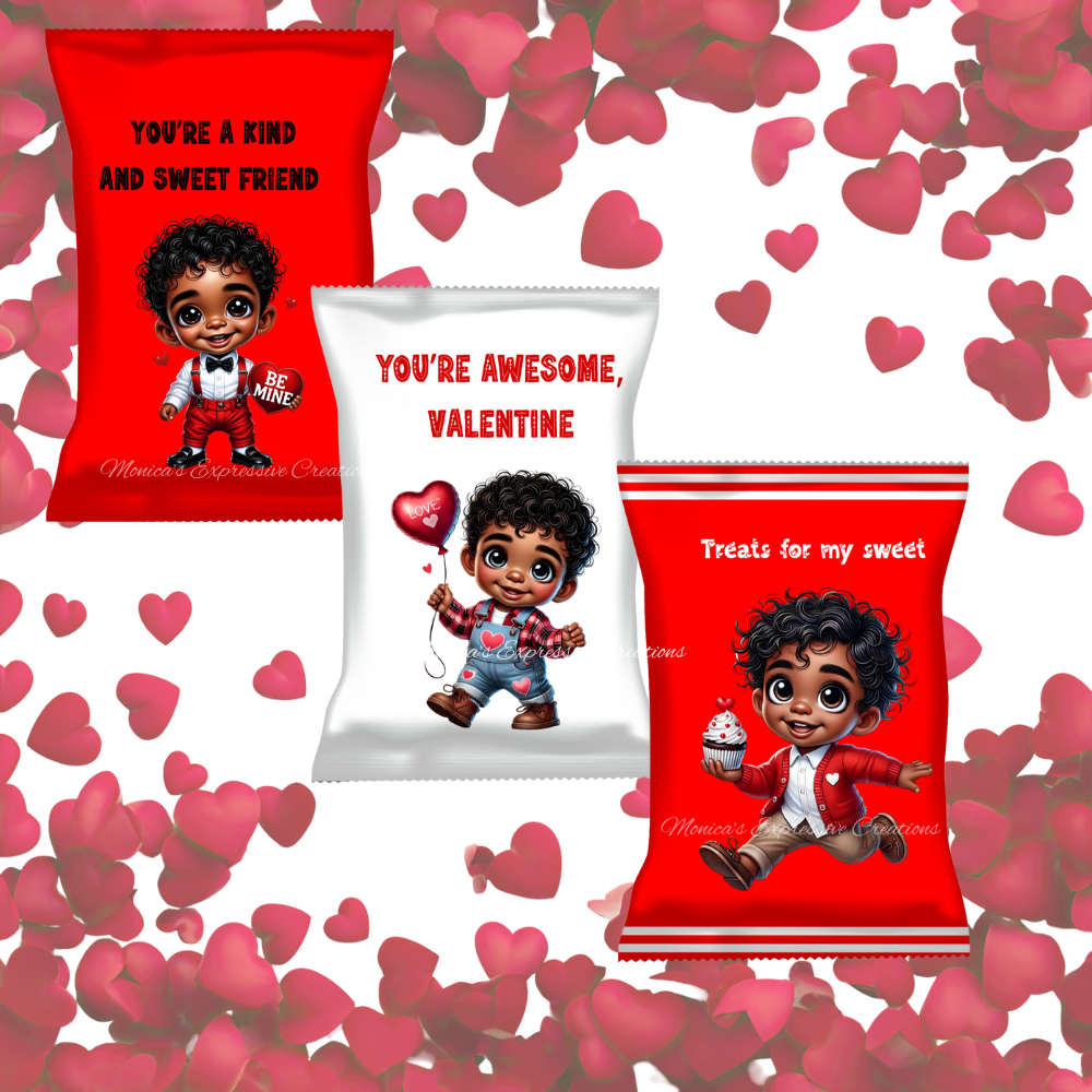 Make Valentine’s Day extra special with these adorable African-American themed Valentine’s Day chip bags for children! This fun and festive digital bundle is perfect for classrooms, daycares, school parties, and kids’ Valentine exchanges.