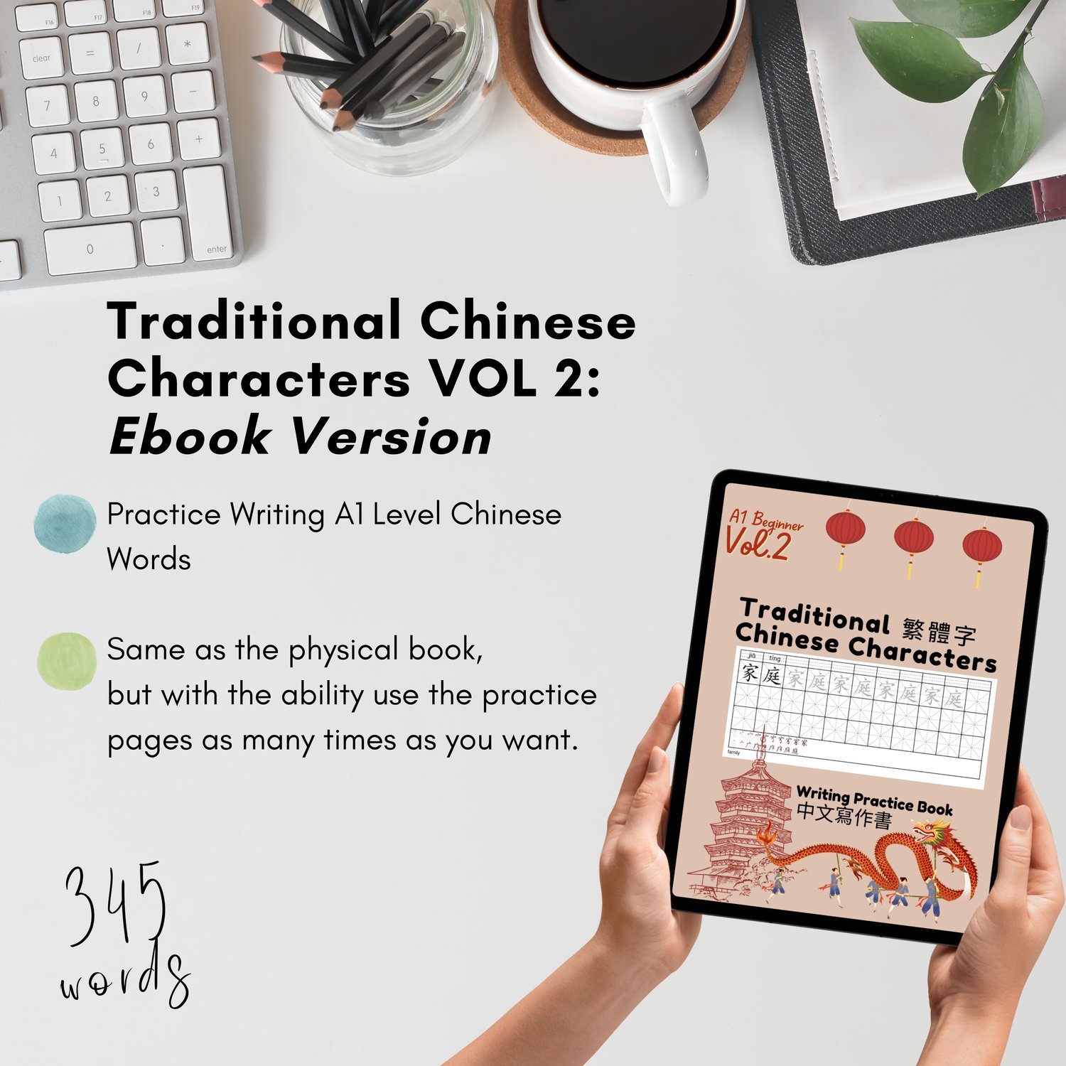 Welcome to VOLUME 2 of our Traditional Chinese Characters (TOCFL Series) Workbook. This e-workbook is designed for Beginner (A1) foreign language students who have already started learning to write traditional Chinese characters and want to continue to level up.