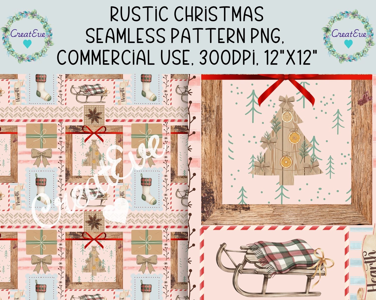 Collage Style Rustic Seamless Pattern PNG, 300dpi, 12" x 12", Commercial Use