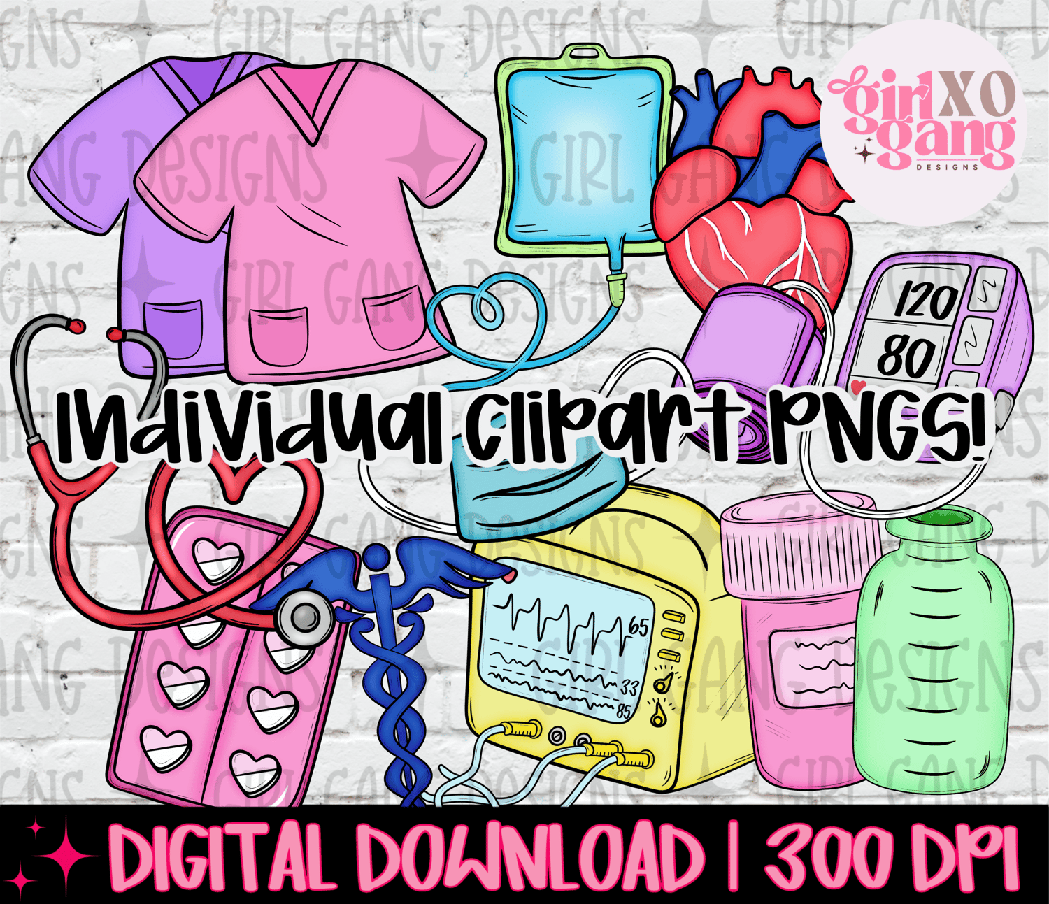 Cardiology doodle clipart png bundle , nursing cardiology elements