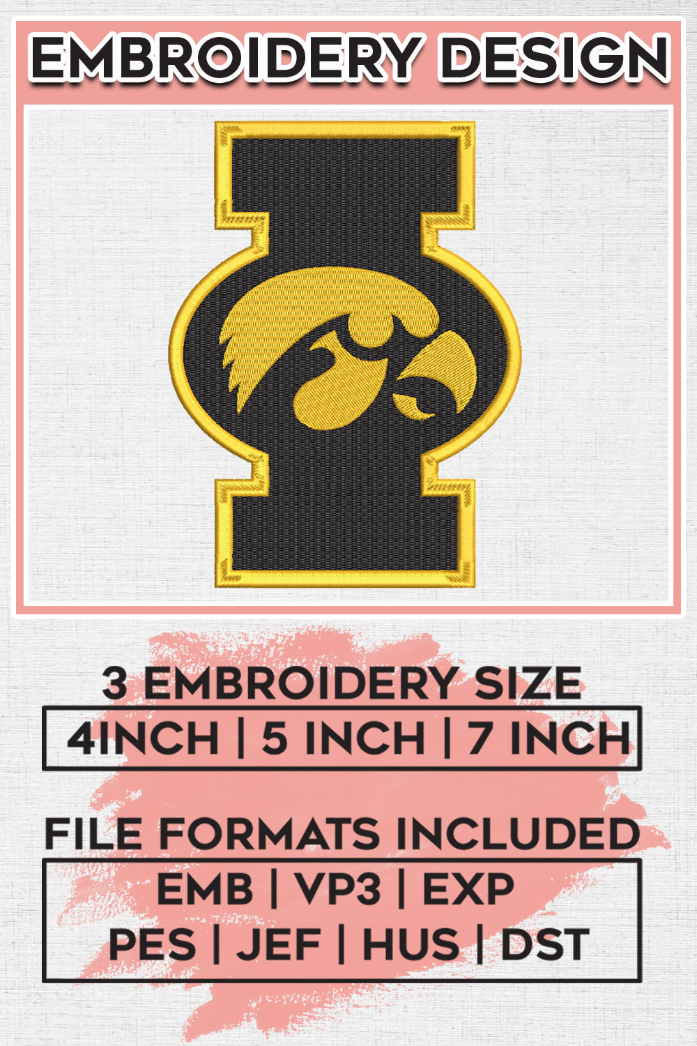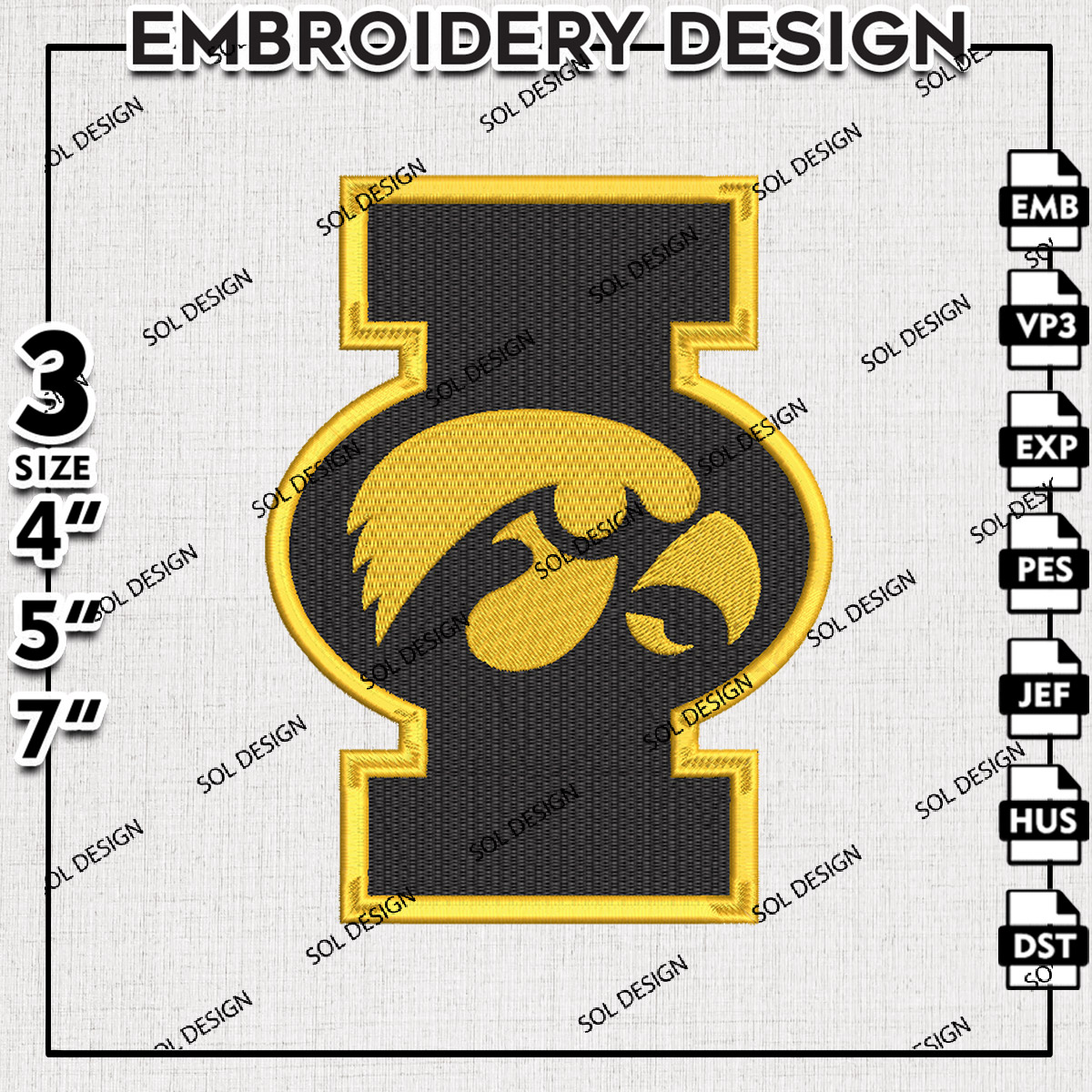 Iowa Football Team Mascot Logo Embroidery Files, NCAA Iowa Hawkeyes Team Embroidery, NCAA College Football Teams, Iowa Team Emroidery, 3 sizes, Machine embroidery designs, Digital Down