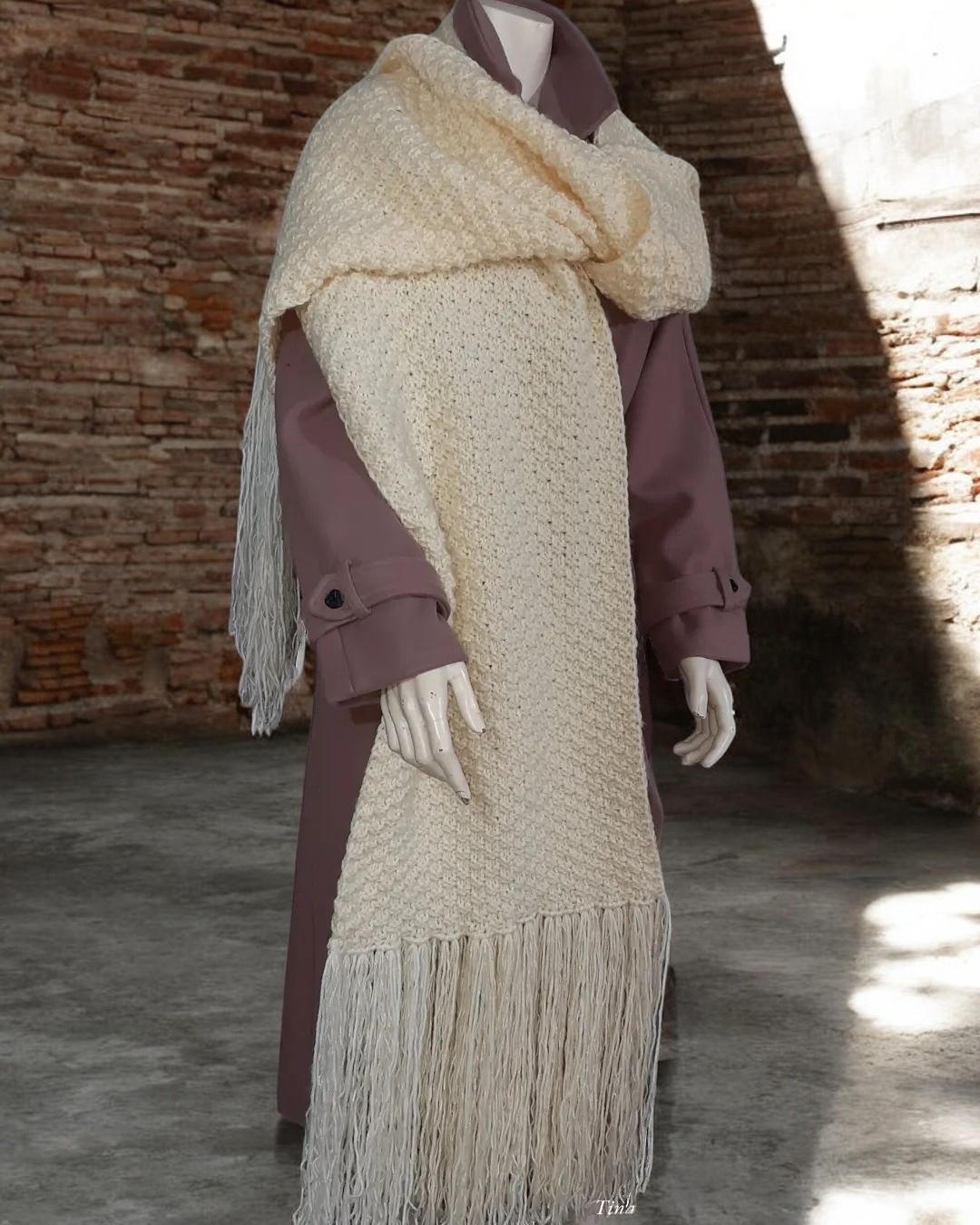 -Fringes: Thick fringes at the ends add a more casual touch and make the scarf look more warm and wintery.