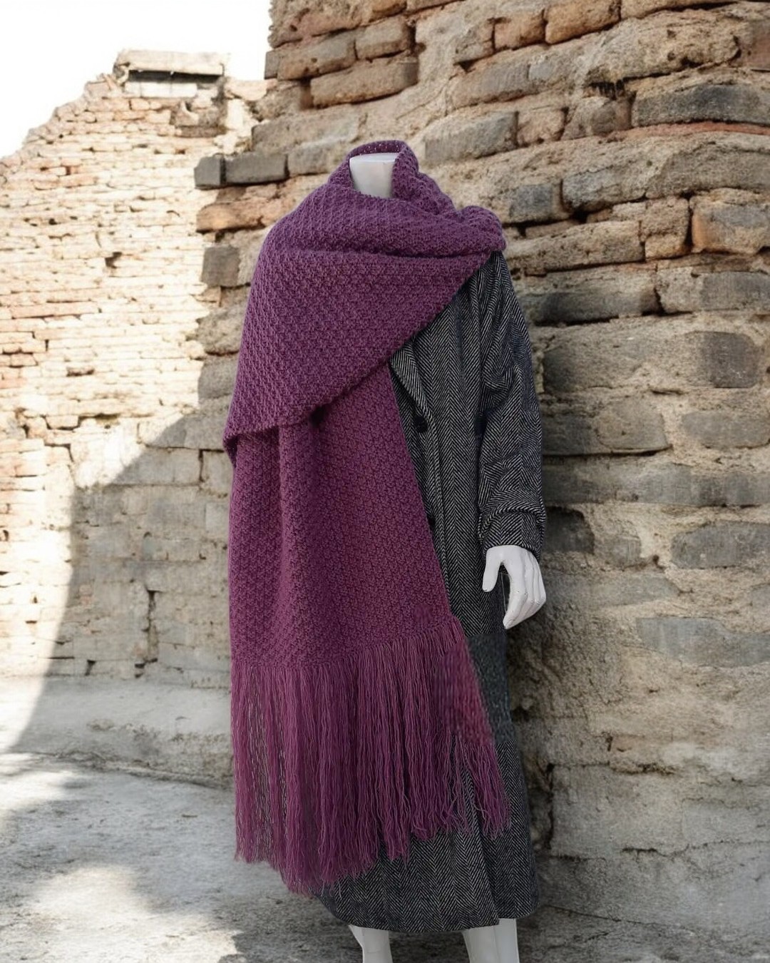 Wool Scarf with Fringes: Handmade Warm Winter Wrap