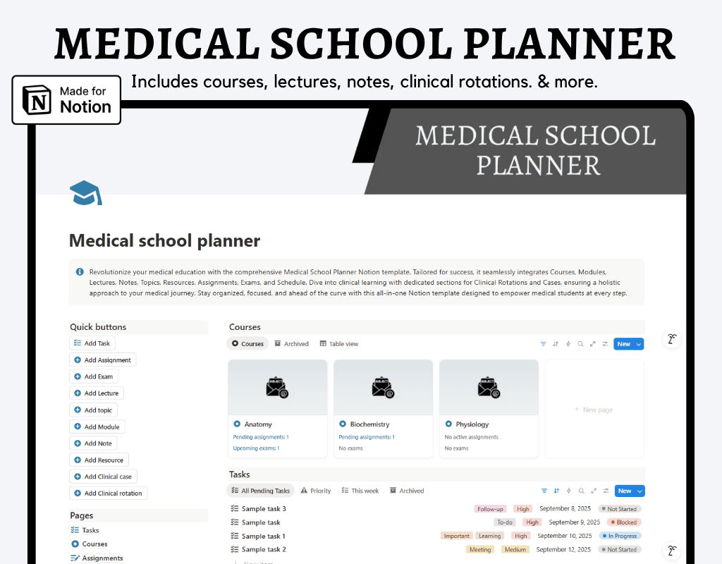 This Medical School Planner Notion template is your indispensable companion, offering a comprehensive suite of tools to navigate the complexities of medical education with confidence and success.