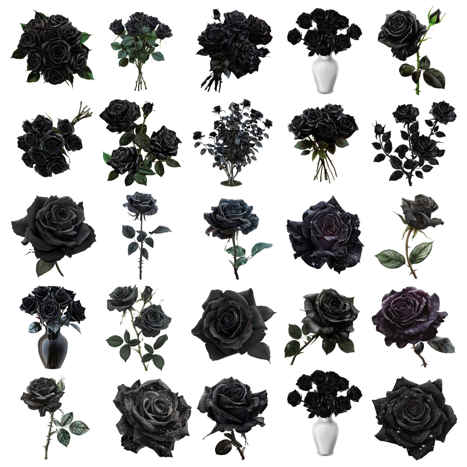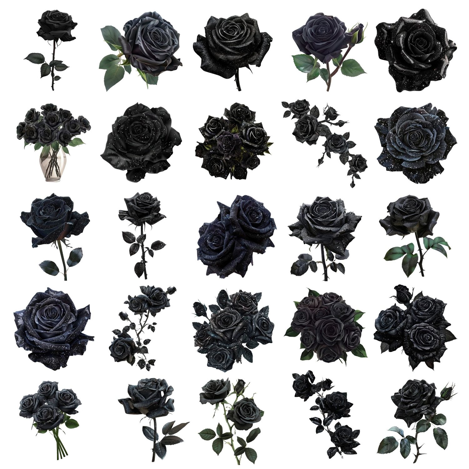 Get Spooky and Stylish! 🖤 Let your imagination run wild with our Black Roses Clip Art Set. Ideal for anyone looking to infuse their Halloween and vampire-themed parties with a touch of gothic sophistication.