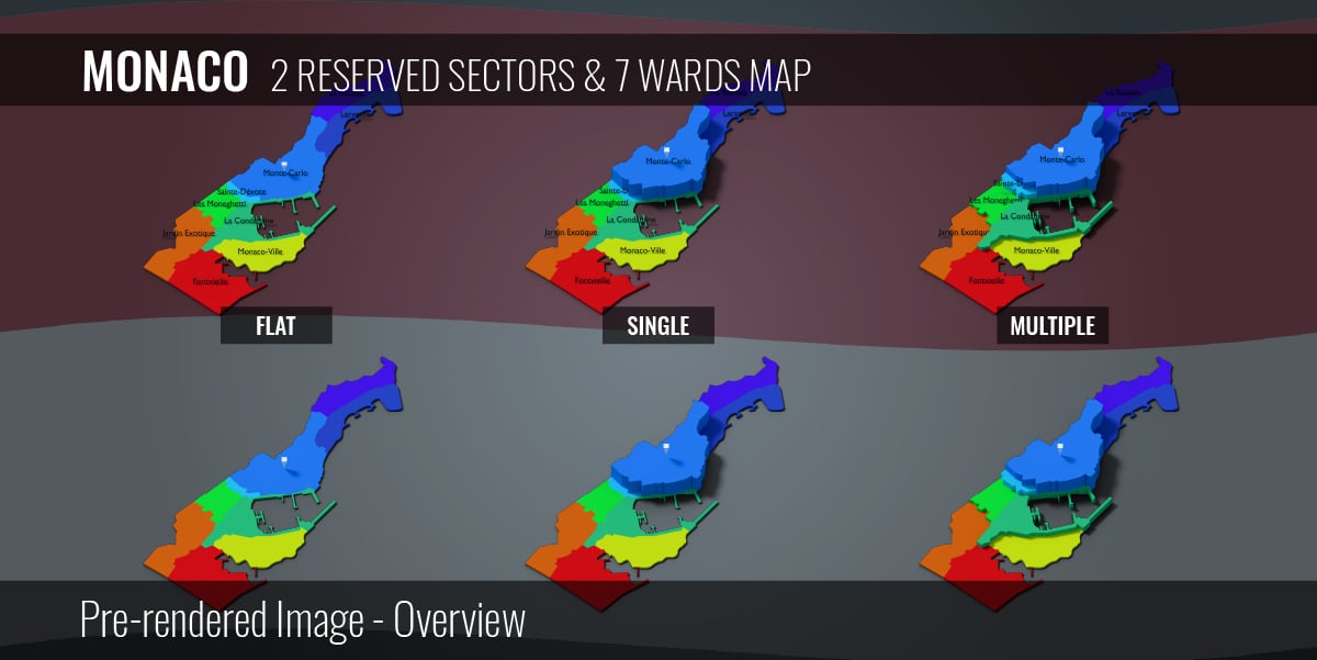 Monaco - 2 Reserved Sectors & 7 Wards Map (3D + Pre-rendered Images)