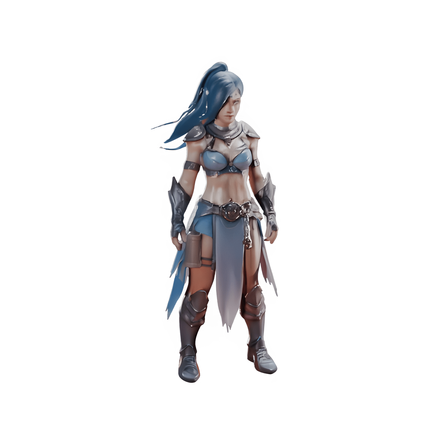 This detailed 3D model brings to life a powerful female warrior, designed for fans of fantasy characters, gaming miniatures, or collectors. She is adorned with intricate armor, wielding a sword that adds a dynamic touch to her stance. With a balance of strength and grace, the warrior's pose reflects readiness for battle, making her an ideal centerpiece for any tabletop game or display.