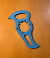 As the name implies, the Power Bar is focused on trying to cause the biggest and most damaging hits possible. The asymmetrical one-toothed design increases how much bite the weapon can achieve, while much of the weight is moved away from the center to maximize the moment of inertia. The weapon is only 1/8 inch thick and the tooth is designed with a sharp rake angle to dig right through TPU armor. Additionally, the weapon tip only touches the perimeter reached by the weapon at a single point to reduce the area underneath the tooth for a vertical spinner to catch.