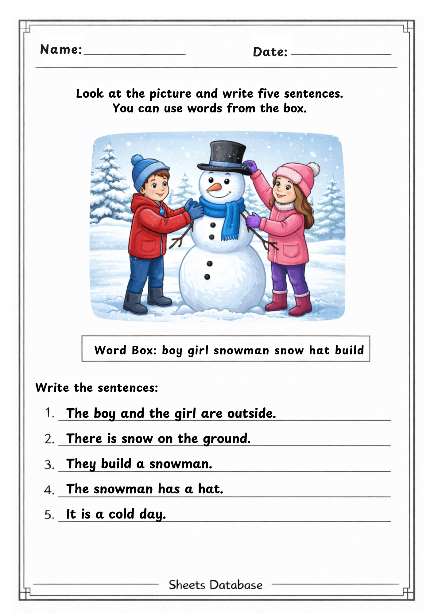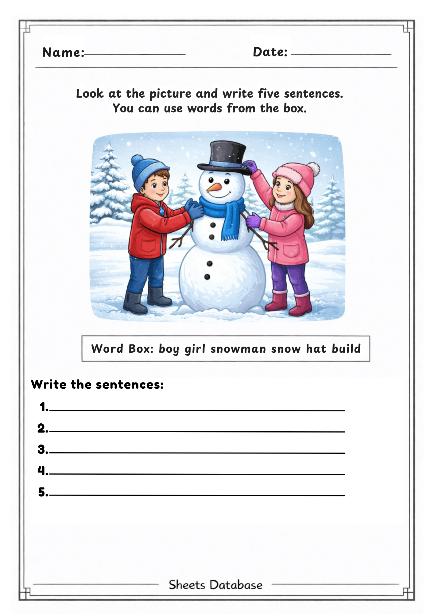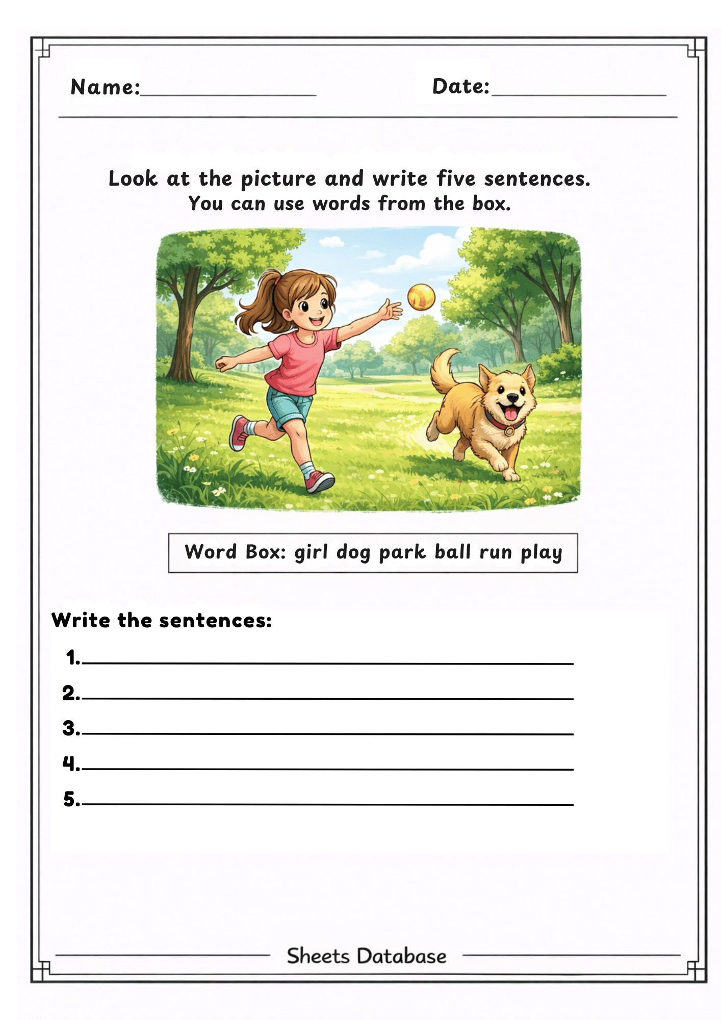 This resource includes 10 carefully designed picture prompts that help students build sentence structure, vocabulary, and confidence in writing. Each worksheet includes: