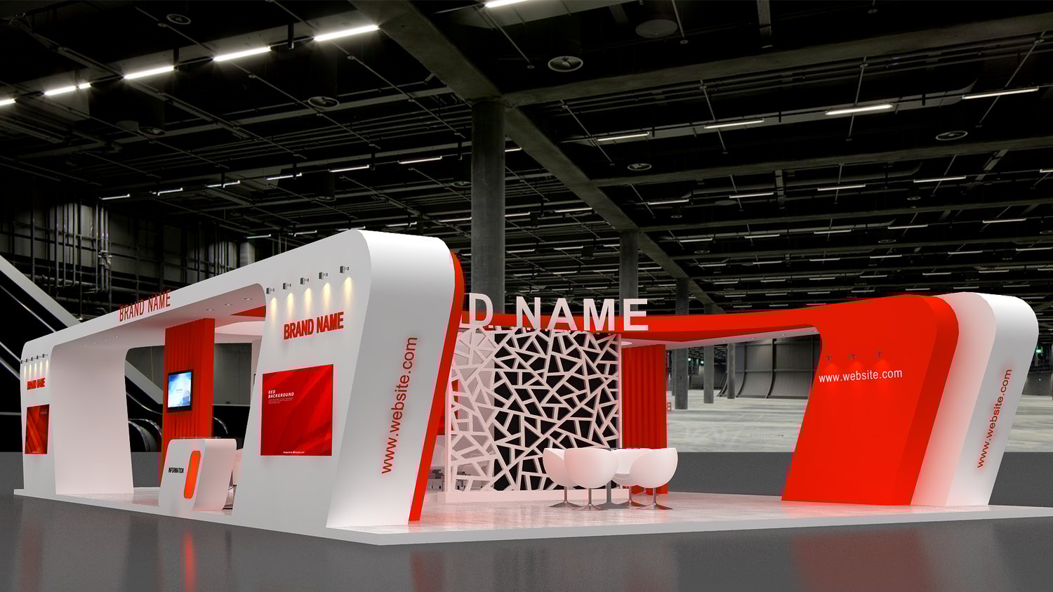 This professional 3D booth model is designed for exhibitions, trade shows, expos, fairs, and event displays.
