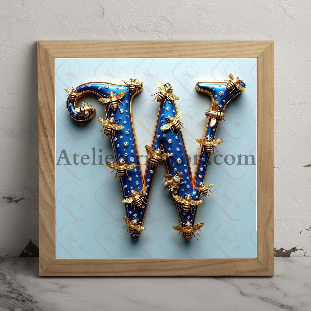The letter W royal blue bees Download Now this high quality AI-generated image, perfect for adding a touch of tranquility and creativity to any space.