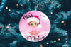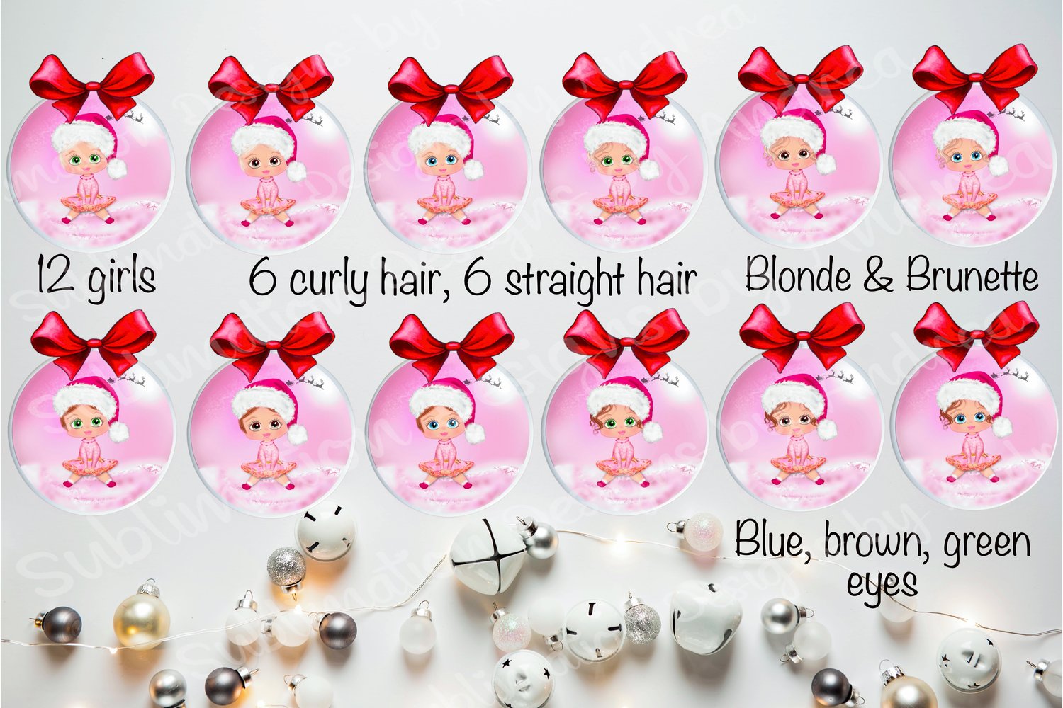 Baby Girls ‘sphere’ round bauble design. 12 PNG files; 2 hair styles in 2 colours, 3 eye colours. Plus separate curved text file '1st Christmas' in 'lonely basket' font - so you choose to use this or make your own text.