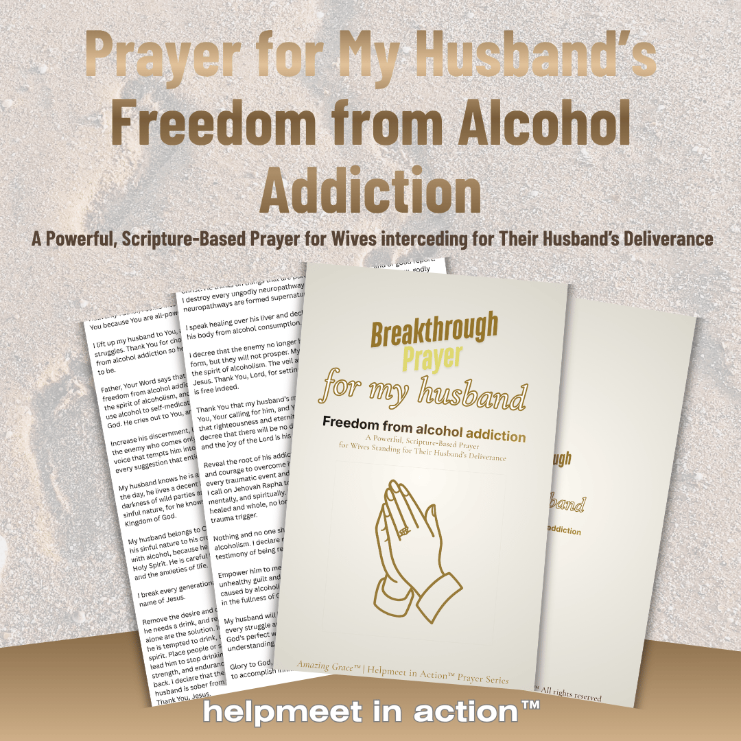 If you are a wife standing in faith for your husband’s freedom from alcohol addiction, this written prayer was created for you. This is a powerful, Spirit‑led, scripture‑rooted prayer designed to help you intercede with authority, clarity, and confidence as you partner with God for your husband’s deliverance.