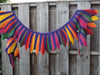 Use a slow colour changing yarn or scraps of different coloured yarns.