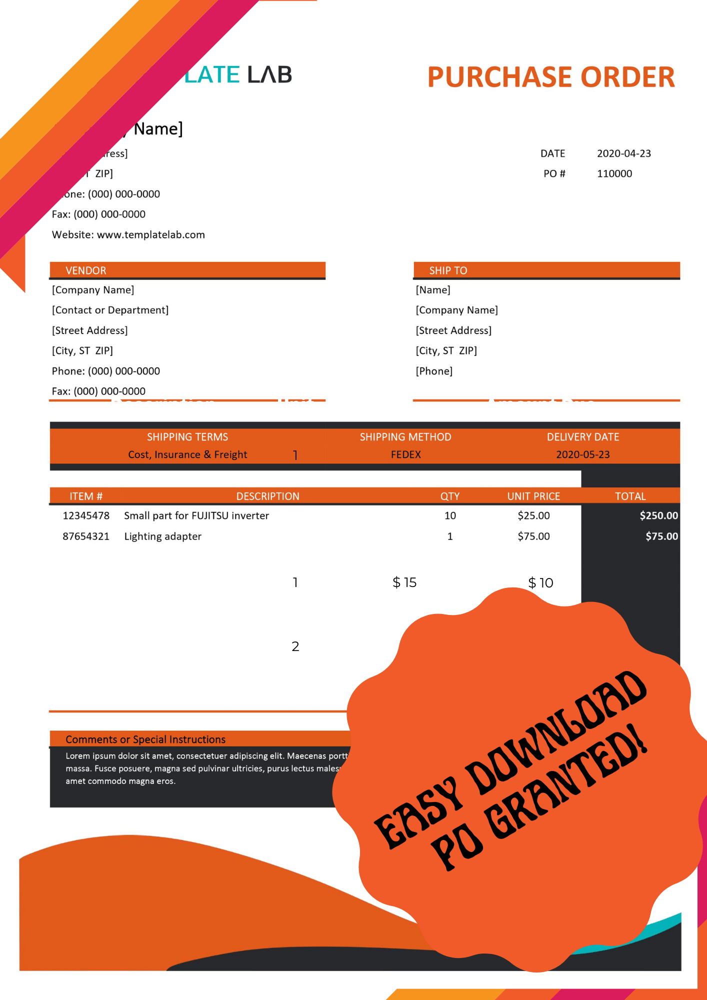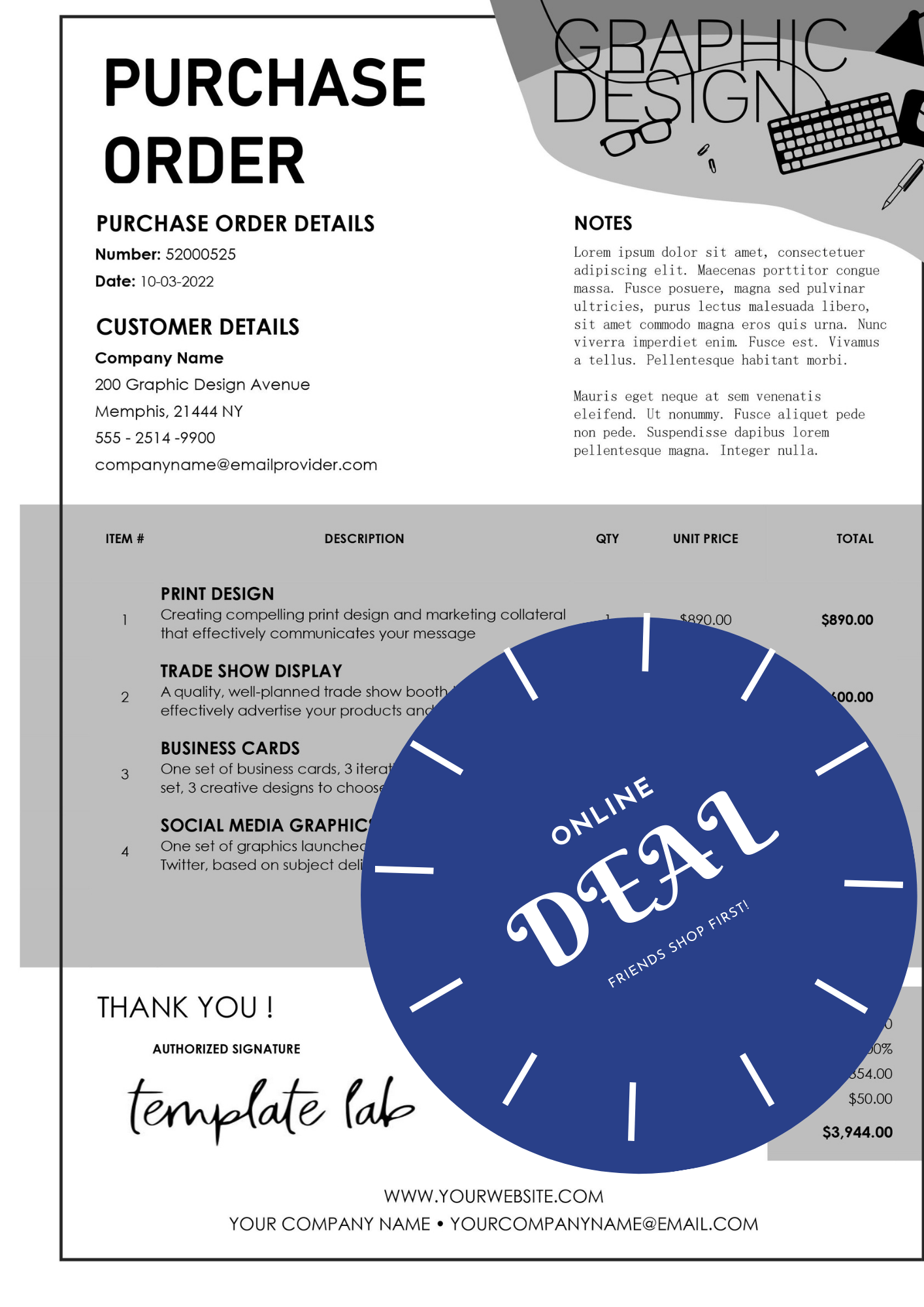 Every Business Needs a Purchase Order in their inventory. Choose our Purchase Order for a sleek look.