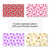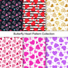 A beautiful collection of 6 Butterfly Heart Seamless Vector Patterns.