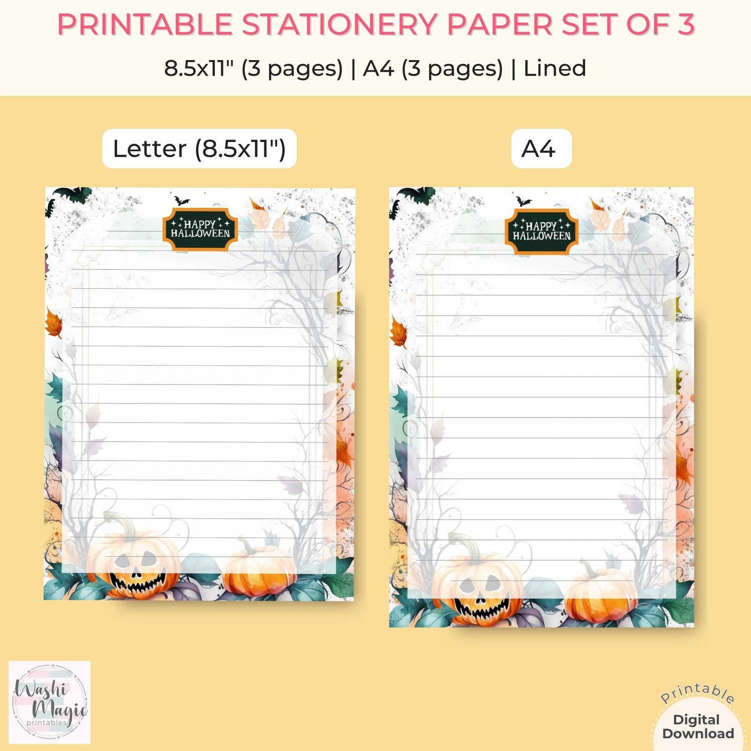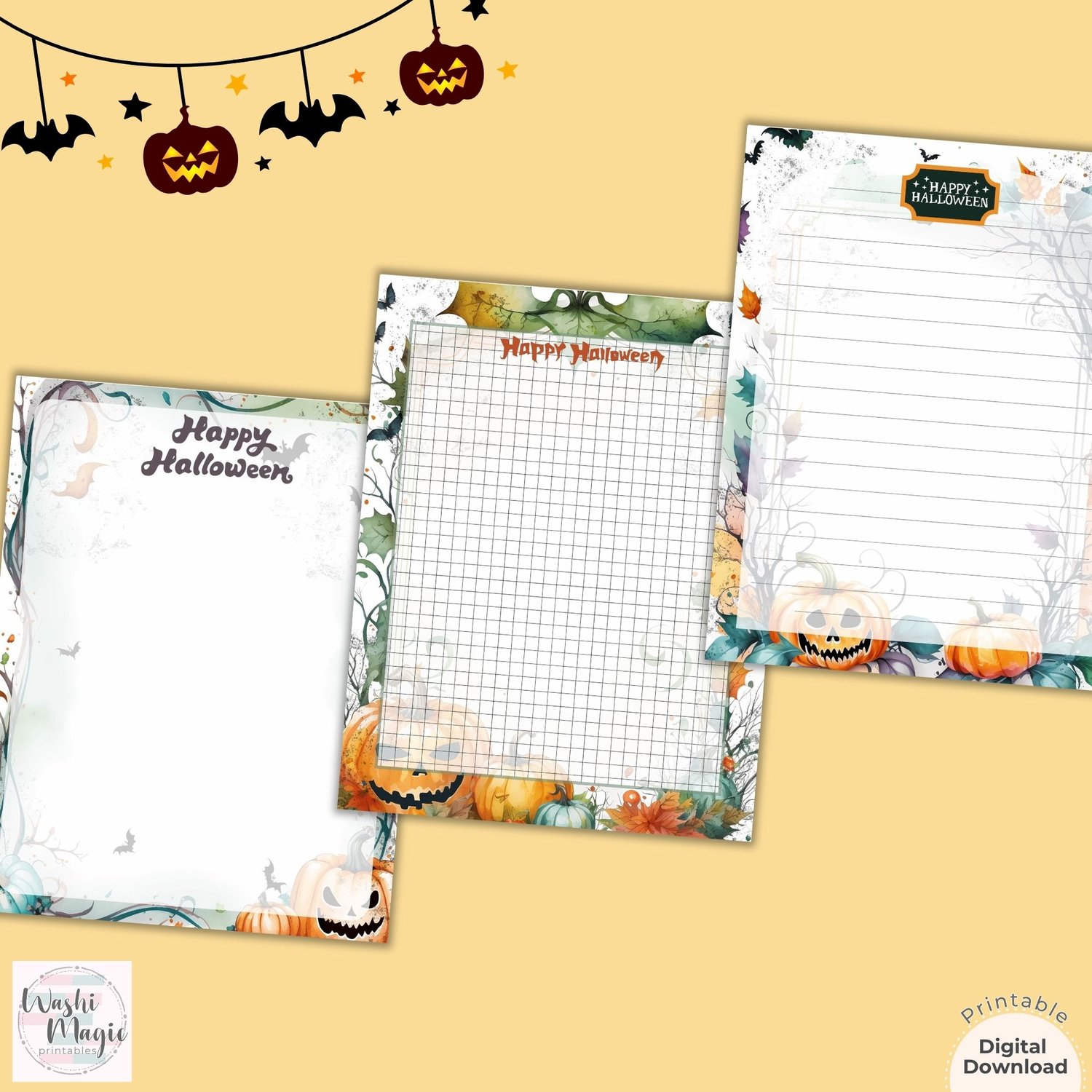 Celebrate Halloween in style with our printable stationery paper set of 3 featuring adorable smiling pumpkins! Perfect for note-taking, invitations, or festive letter writing, this charming set is designed to bring a smile to your face.