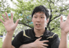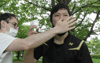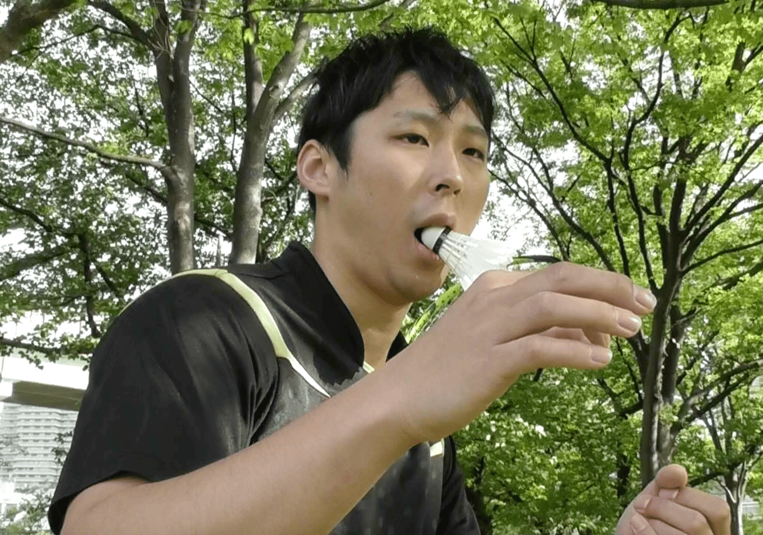 Azuma is training for badminton in the park, then he is time stopped in many poses. See him frozen with his shuffle in his mouth, while jumping or using the racket. He is also frozen scared and moved around.