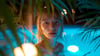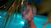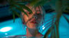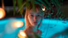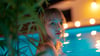 Beauty Asian Blonde Girl in Blue Luxury Pool