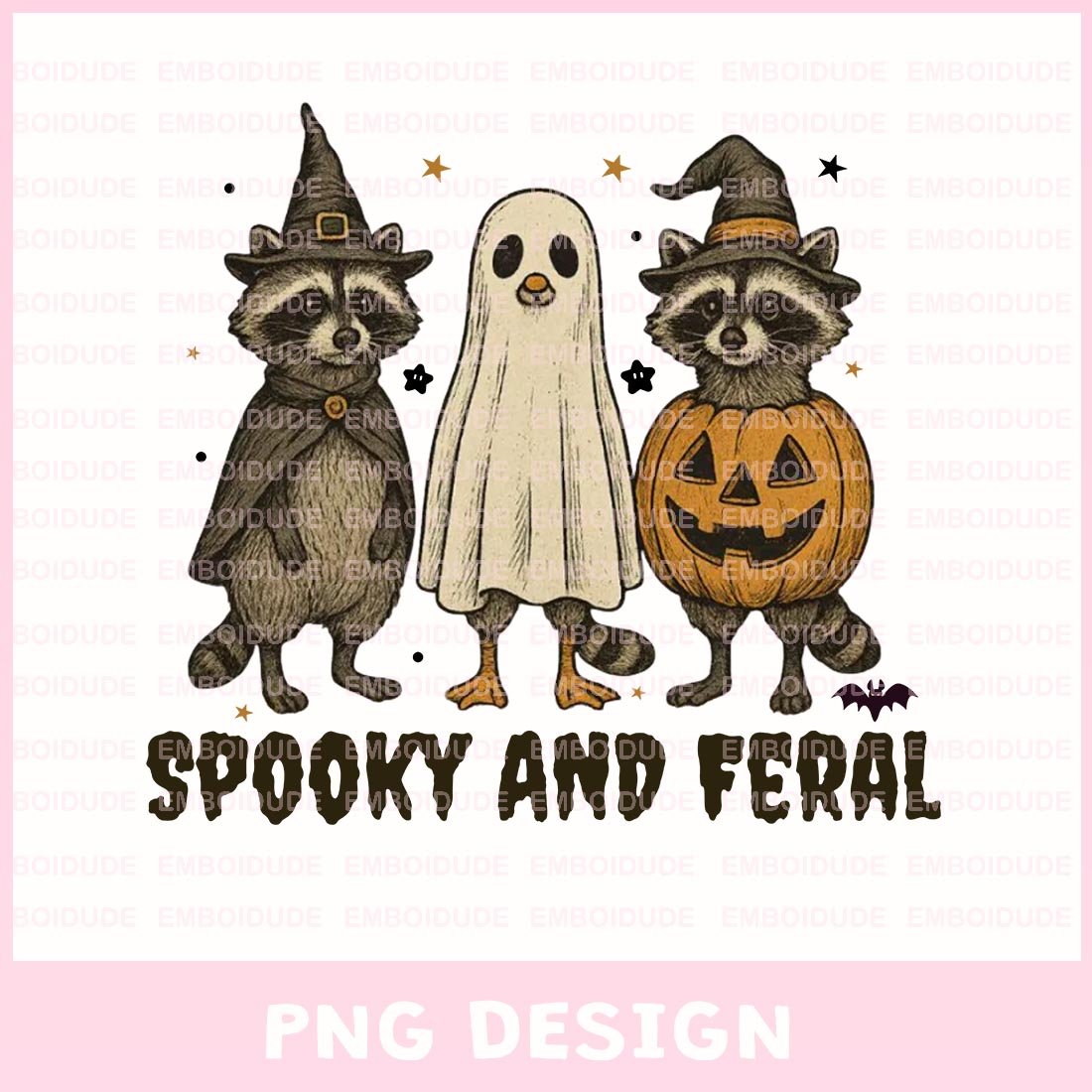 Spooky and Feral Halloween Family Raccoon Png Designs, Retro Spooky And Feral Raccoon Sublimation Png, reepy Cute Raccoon Clip Art, Retro Halloween Design, Digital Download
