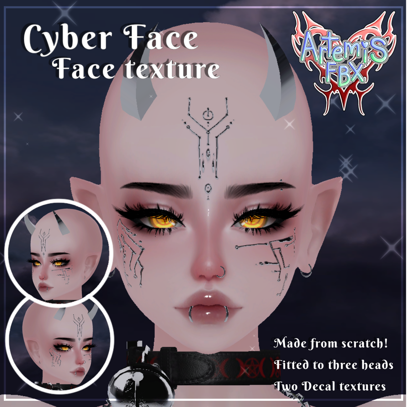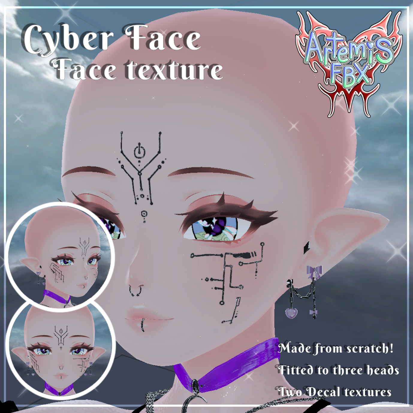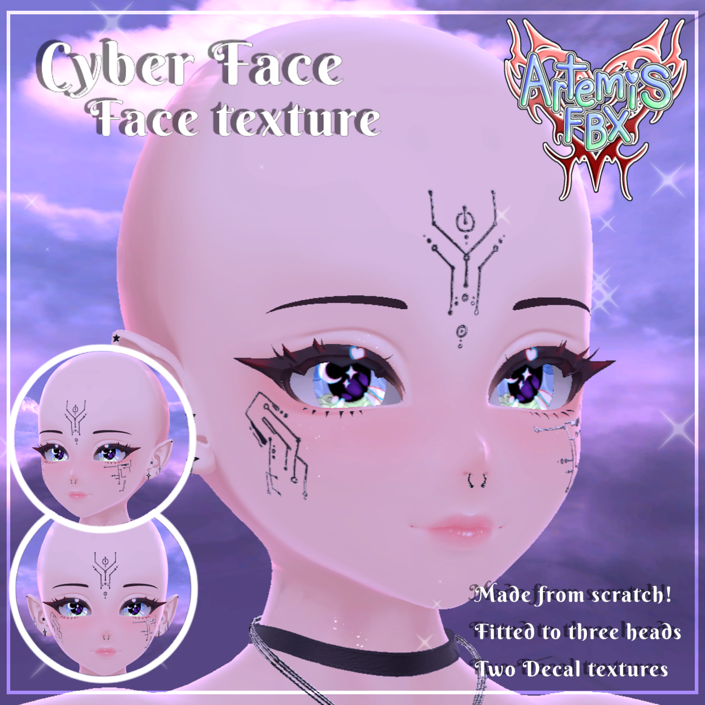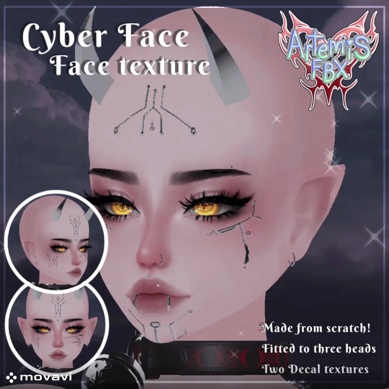 You get a transparent PNGs of the makeup decal, black & white, Emission map, and Normal mapsl! And can be easily edited onto any head base!