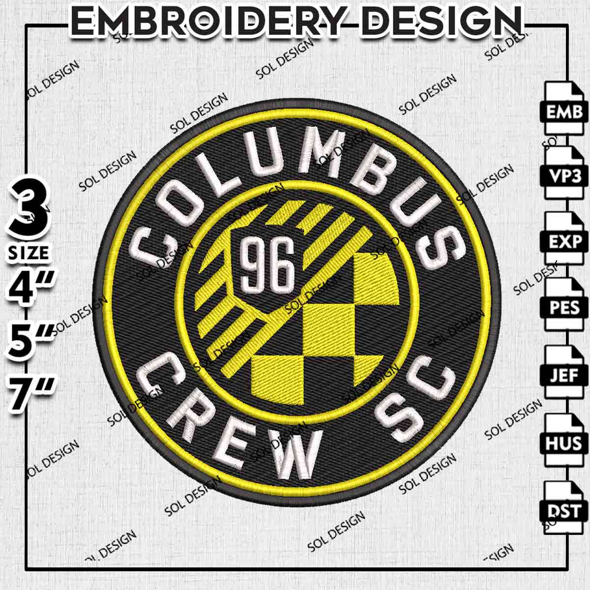 Columbus Crew Round Logo Embroidery Designs, Columbus Crew Embroidery Files, MLS Columbus Crew Soccer Team Logo Embroidery, Major League Soccer Machine Embroidery Design, Digital Download