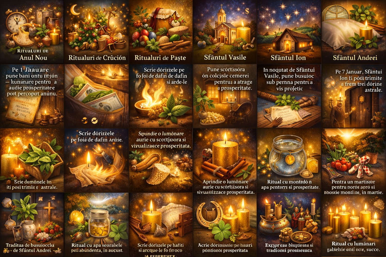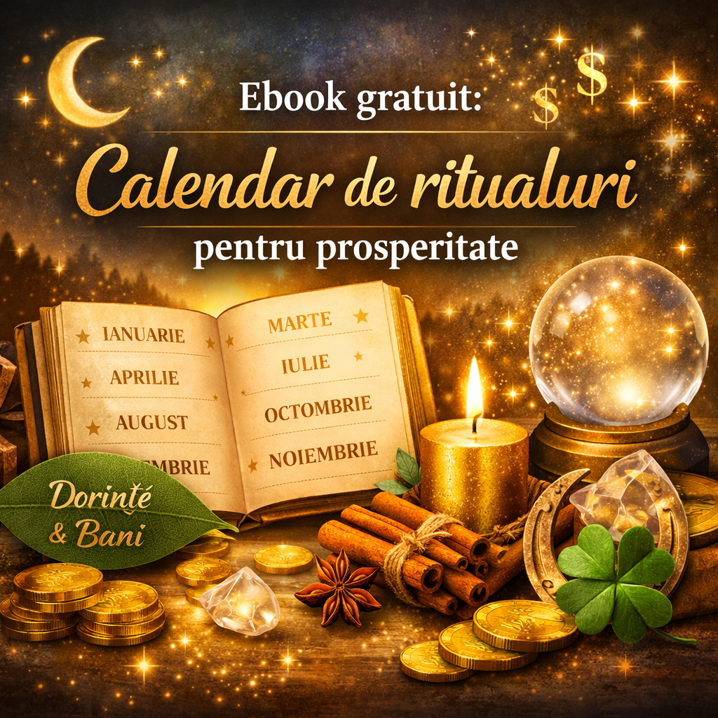 Dacă vrei să începi anul cu o direcție clară și cu o rutină care te ține ancorat în ideea de prosperitate, protecție și disciplină personală, acest ebook este un ghid practic, ușor de urmat, organizat pe luni, care îți arată ce obiceiuri, ritualuri și tradiții poți face de-a lungul anului pentru a-ți curăța energia, a-ți seta intențiile și a-ți menține focusul pe bani, succes și abundență fără să te pierzi în lucruri complicate.
