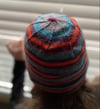 This pattern uses a center-out cast-on method I’ve developed called the Infinity Inside-Out Cast-on and includes a photo tutorial for it. It’s designed to use any yarn knit at any gauge you like; some general suggestions are given for picking a needle size for your yarn. And while following the pattern as written gives you a basic beanie-style hat, you can use the general construction with other hat patterns or stitch patterns to create your own interpretation.