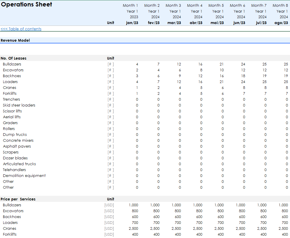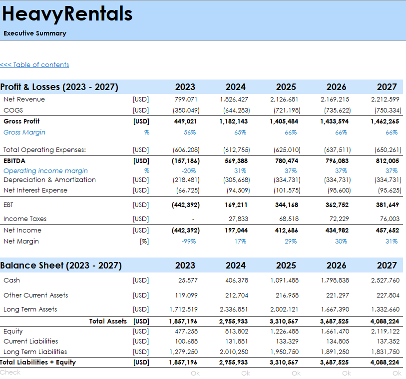 The financial model for an Equipment Rental Business Financial Plan is designed to assist owners and investors in making informed decisions about a Rental Business Case.