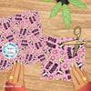Mooody cows and daisy flowers in pink.