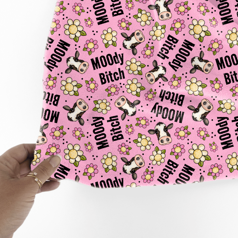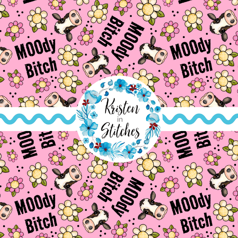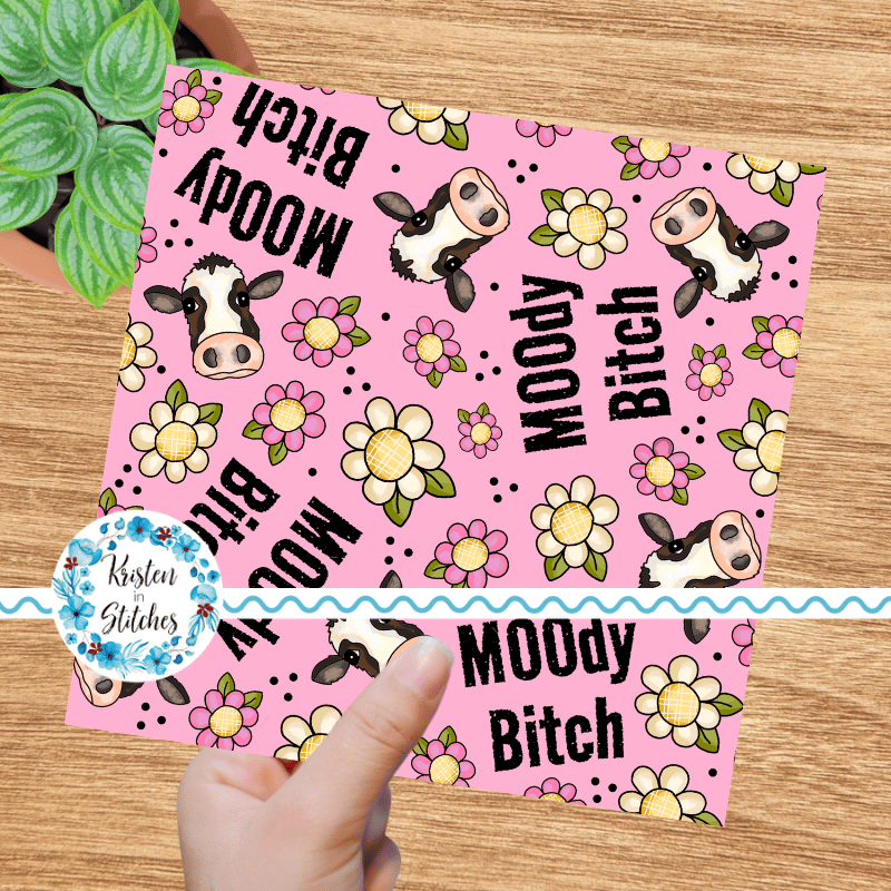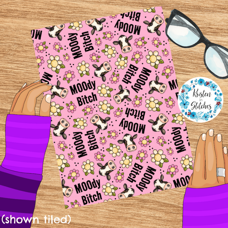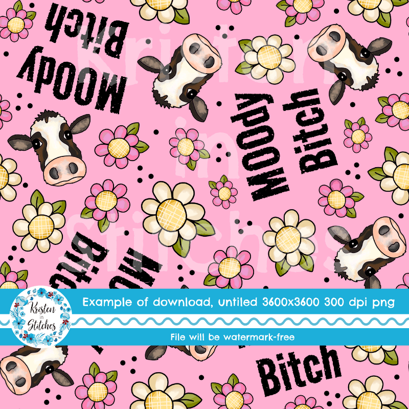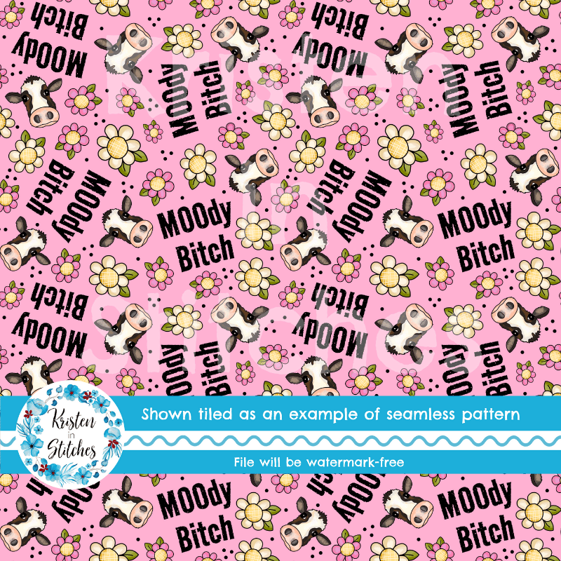Moody Bitch Sweary Seamless Pattern, Cows and Daisy Flowers