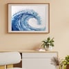 Power of the sea - The great wave – Hand-painted blue art – Printable download