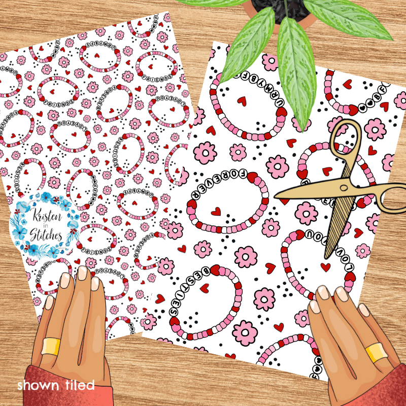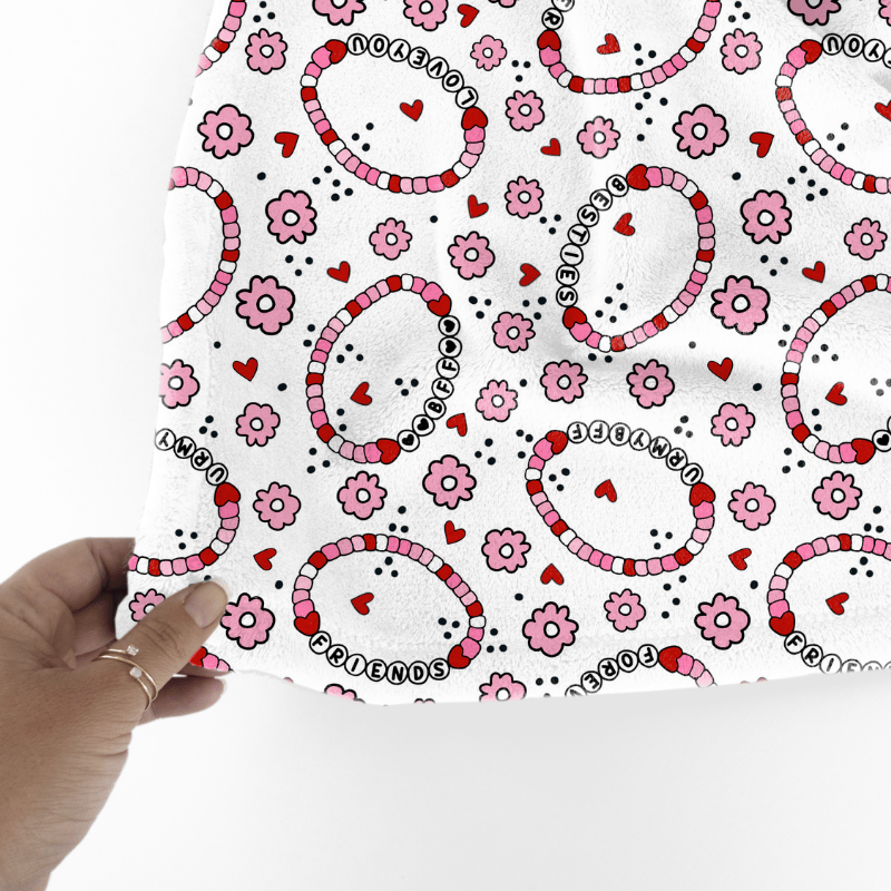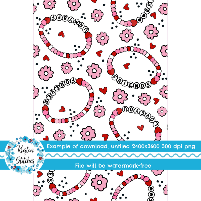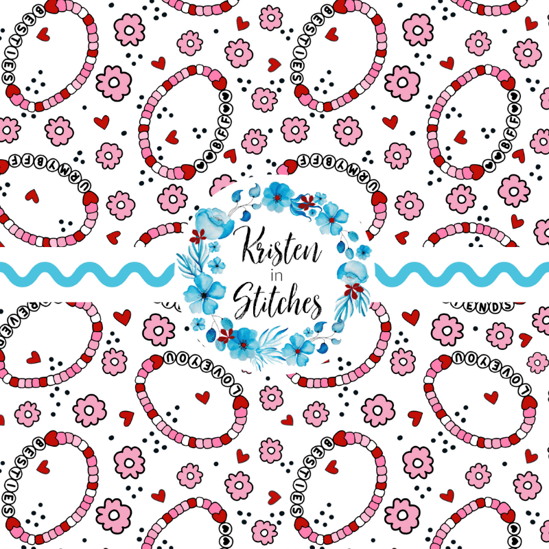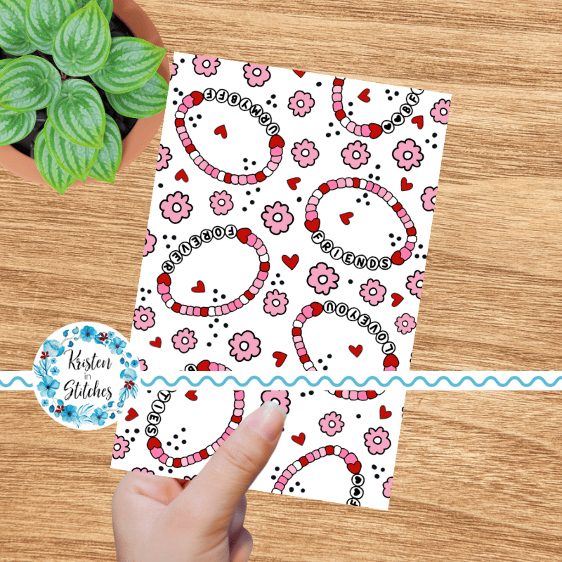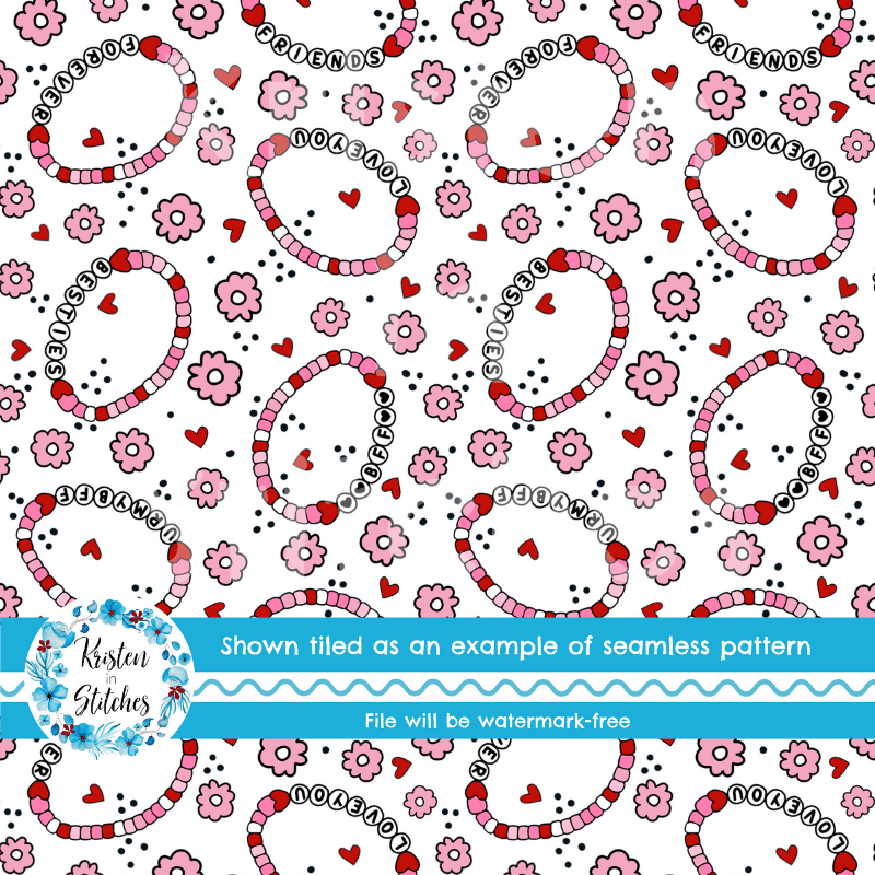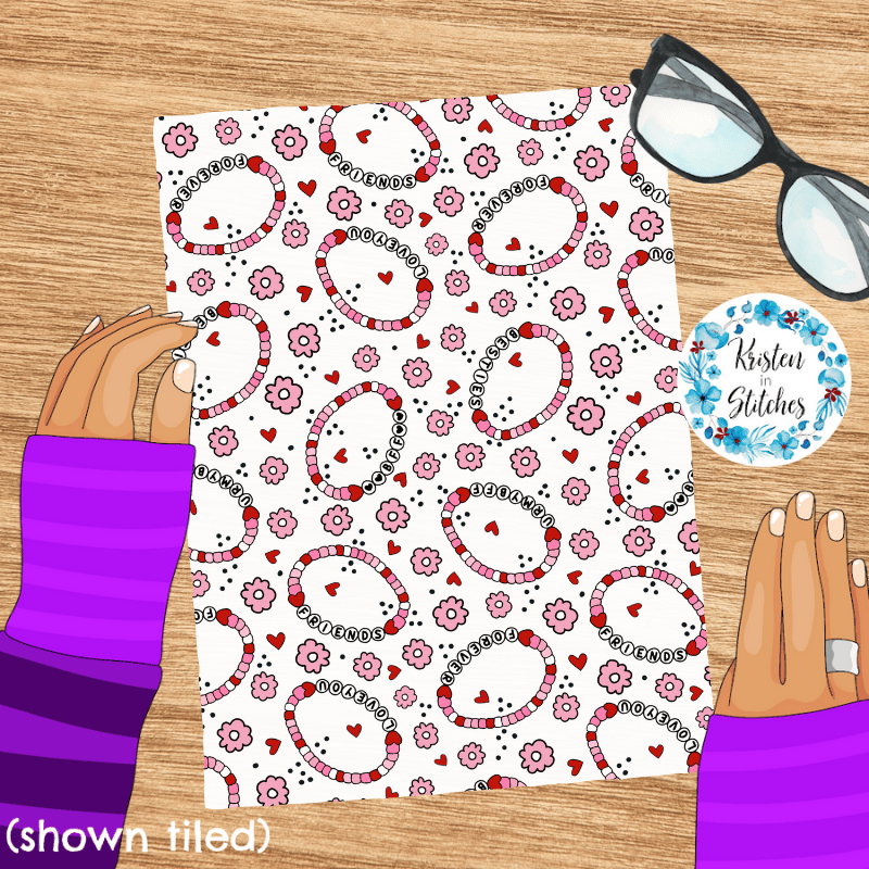 Friendship Bracelets Hearts Flowers Seamless Pattern Pink and Red