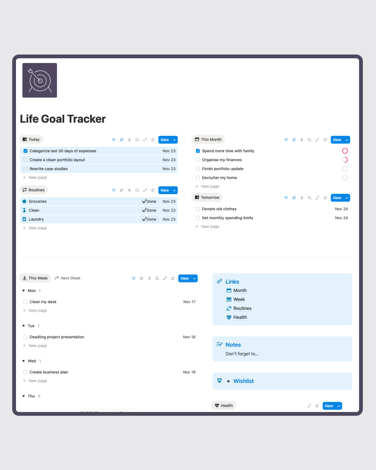 Notion Template: Life Goal Tracker