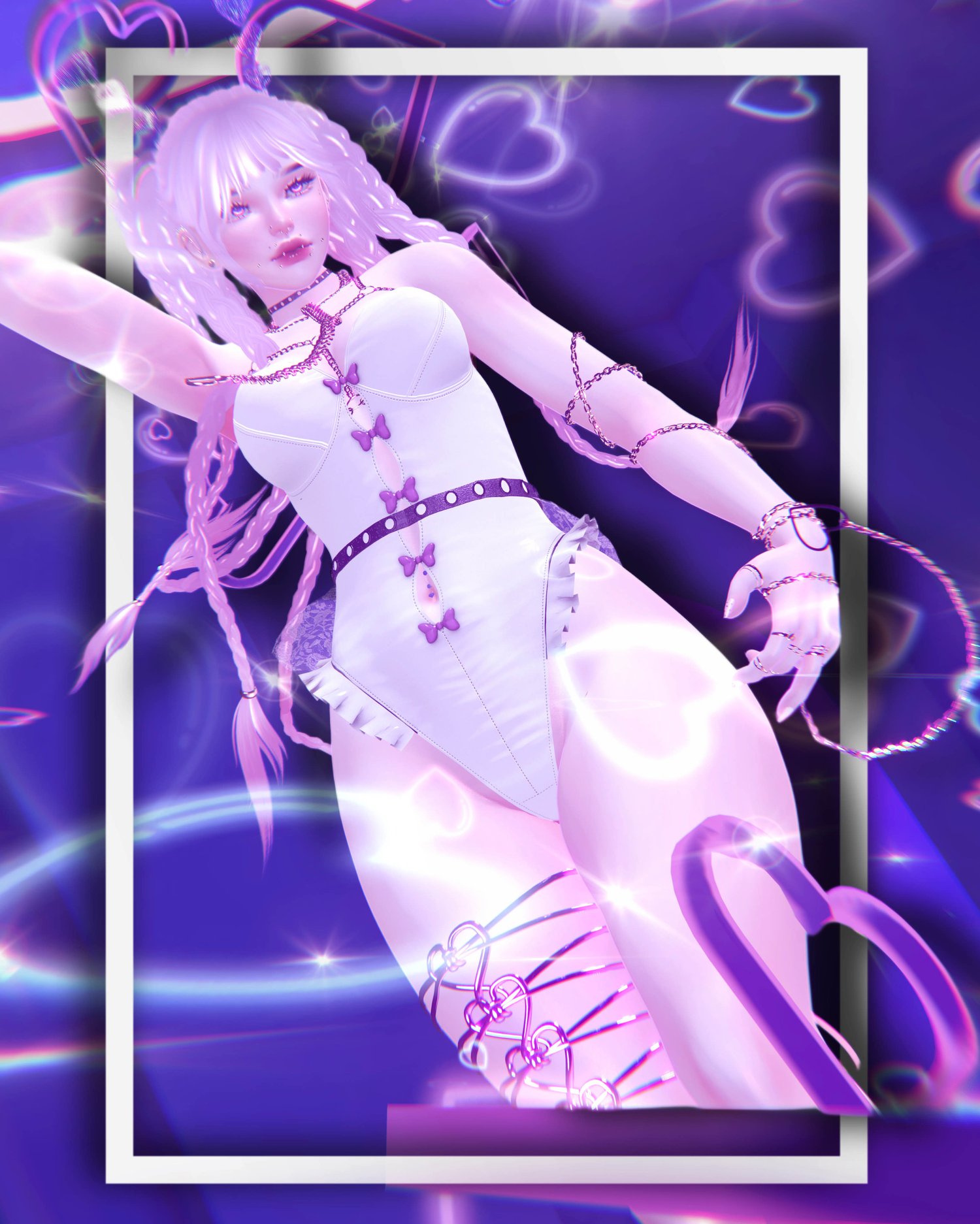 Head Base | Body Base | Fishnets | Braid Hair | Short Hair | Horned Hair | Twists Hair | Heart Boots | Ribbon Heels | Socks | Shibari | Arm Chain | Harness | Heart Belly Button Ring | Neck Chain | Bracelet/Rings/Nails | Heart Icons | Lighting Menu Setup | Gogo Loco | SPS | Neon Heart Particles and Flow Toys | Heart Headband | Fake Index | Avatar Limb Scaling