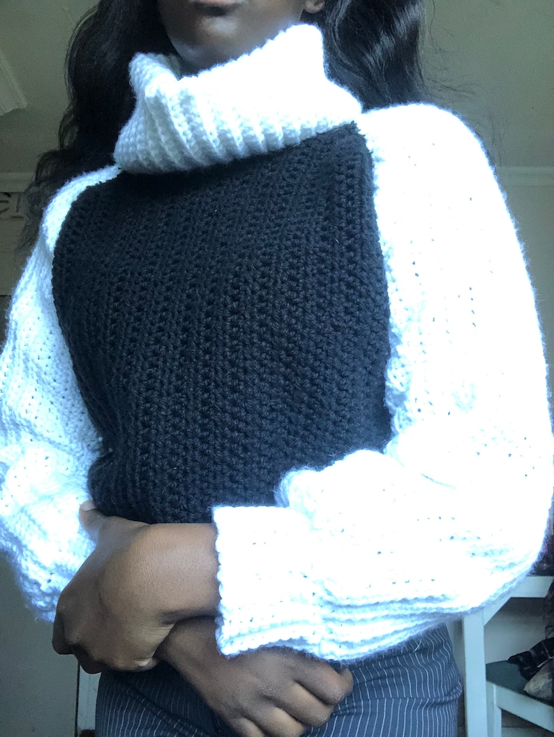 Craft your own Mock Neck Puff Sleeve Crochet Sweater and enjoy the perfect blend of comfort and style that makes a statement in any season!