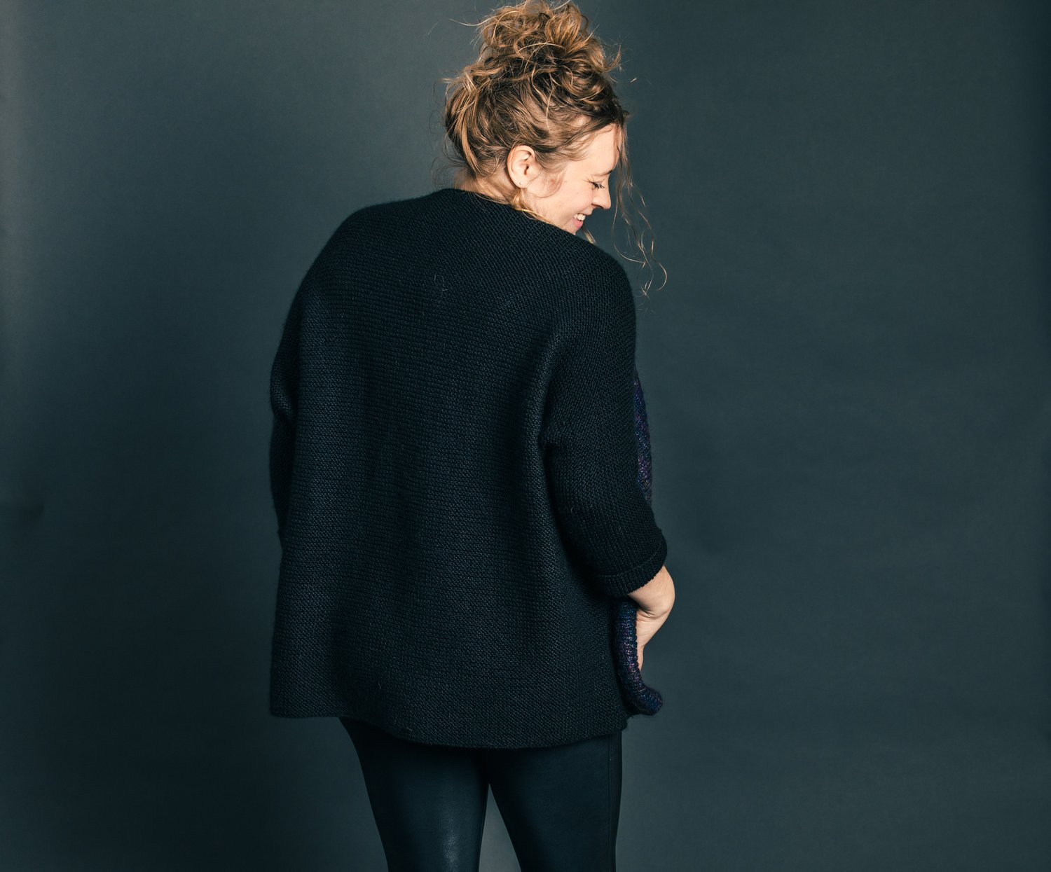 This cardigan was inspired by my grandma Carol. She taught me how to sew by hand when I was very young. She is incredibly talented and inspires me everyday! My creativity surely comes from this amazing woman! This cardigan is simple and has a beautiful flattering drape! It can also be worn upside down for a cropped look.